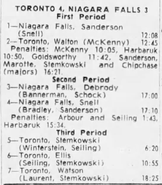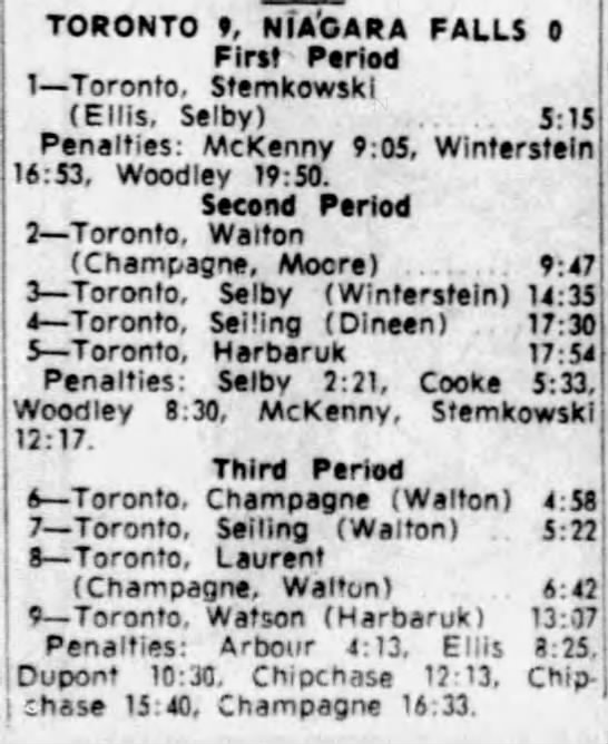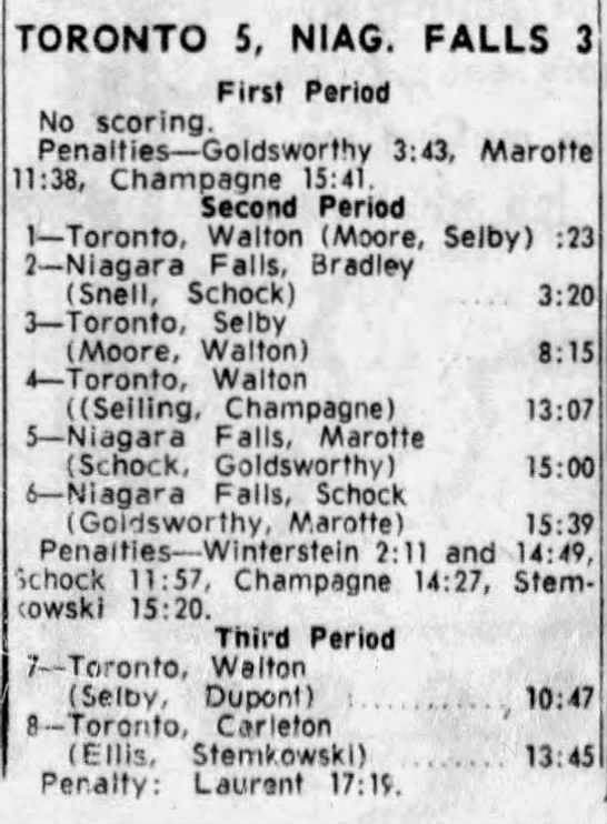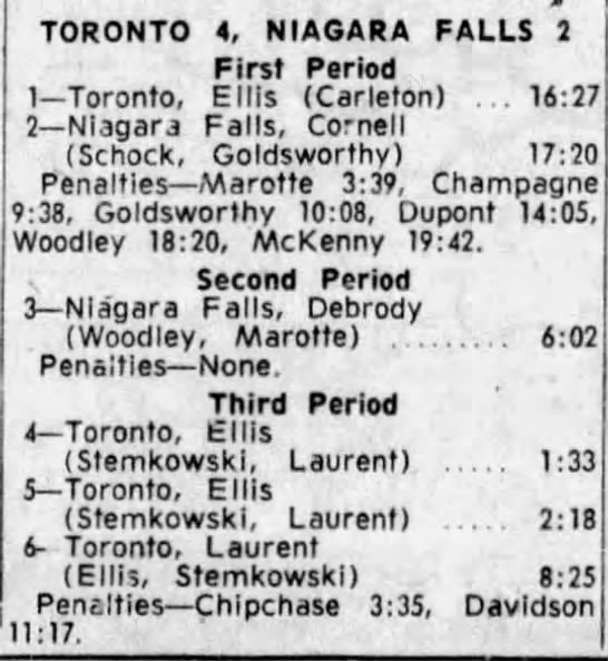 Game 1- March 13 1964- Toronto @ Niagara Falls