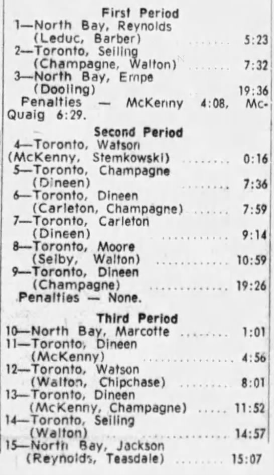 Game 3- April 22 1964- Toronto @ North Bay (7-5 Toronto)