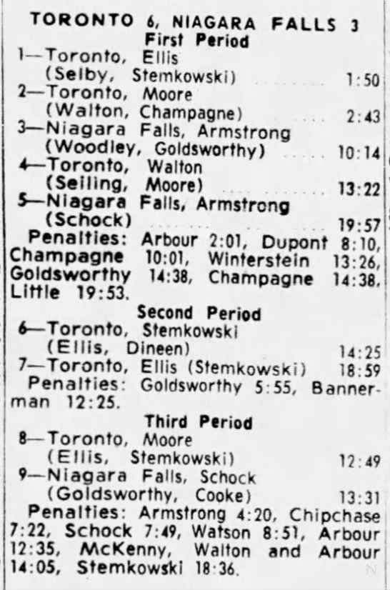February 4 1964- Toronto @ Niagara Falls (4-2 Toronto)