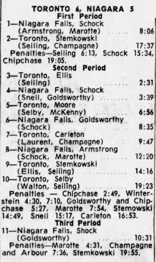 October 20 1963- Niagara Falls @ Toronto (4-3 Toronto)