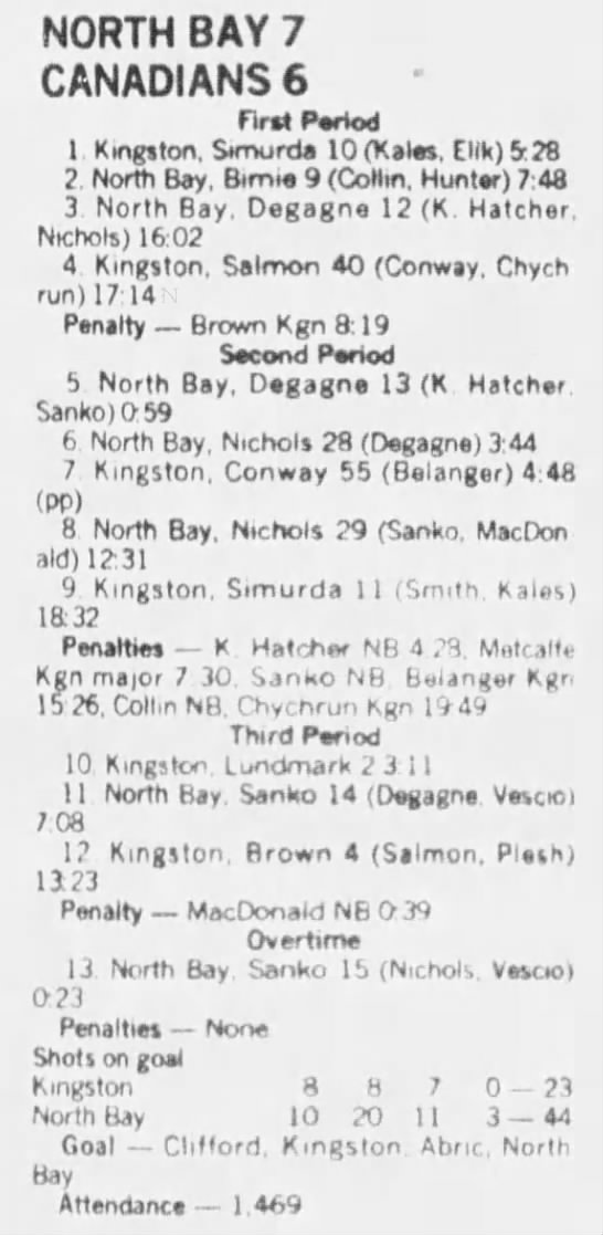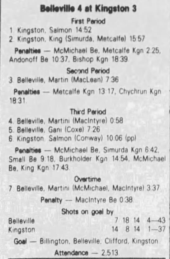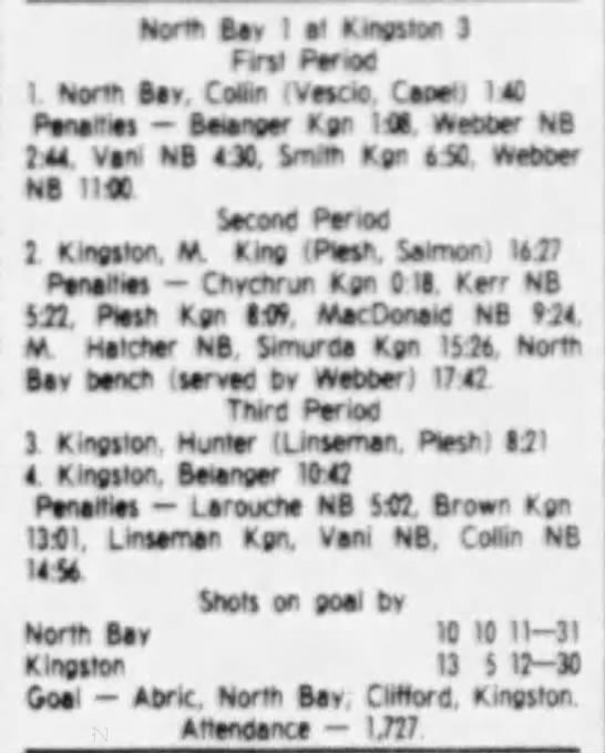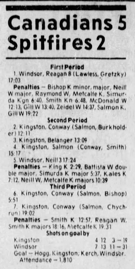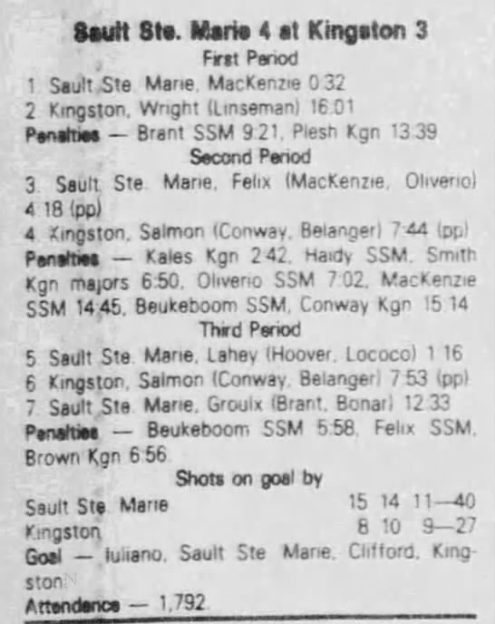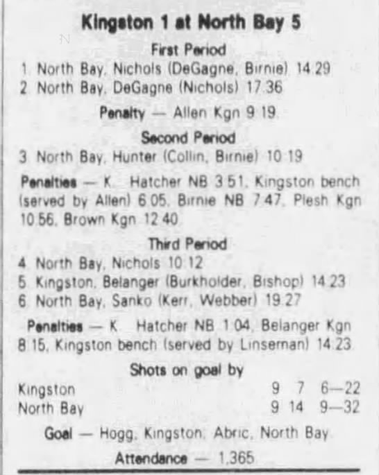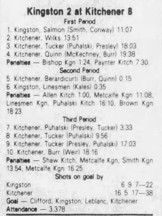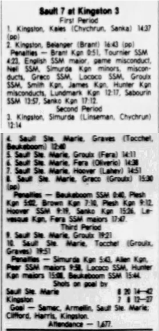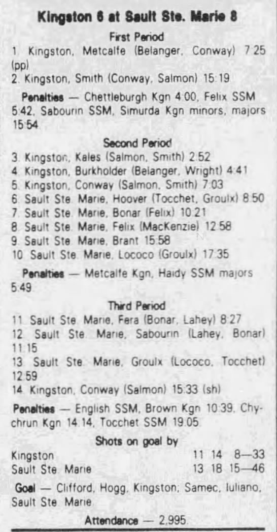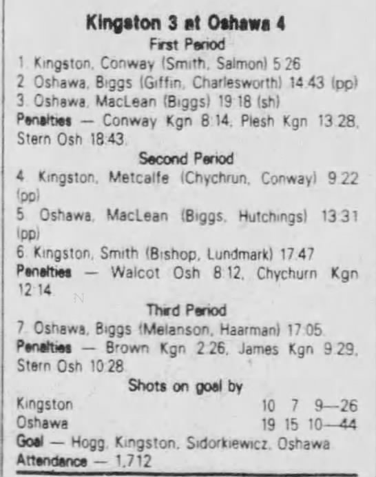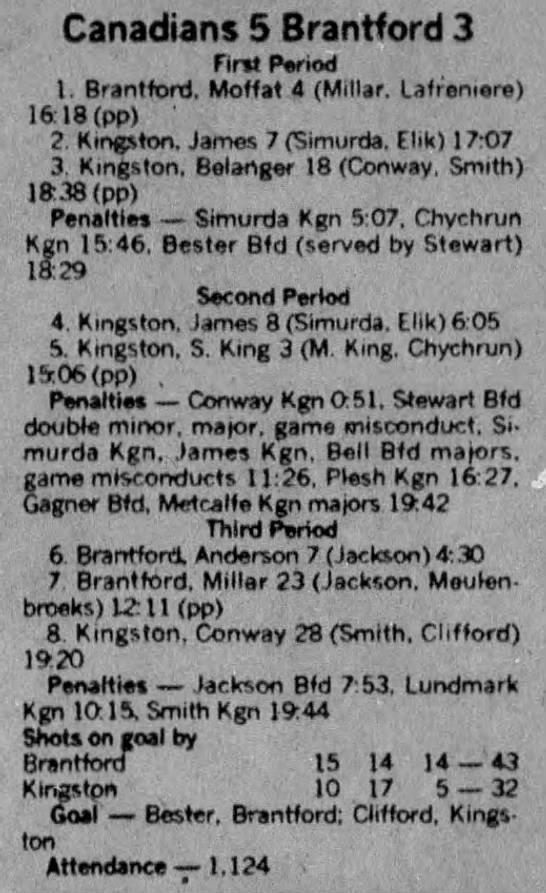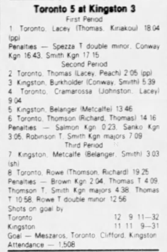 Here are the boxscores from the 1983-84 Kingston Canadians season. Every boxscore from that year are here (70/70 boxscores). If you have any of the games that are missing, please send them my way.
