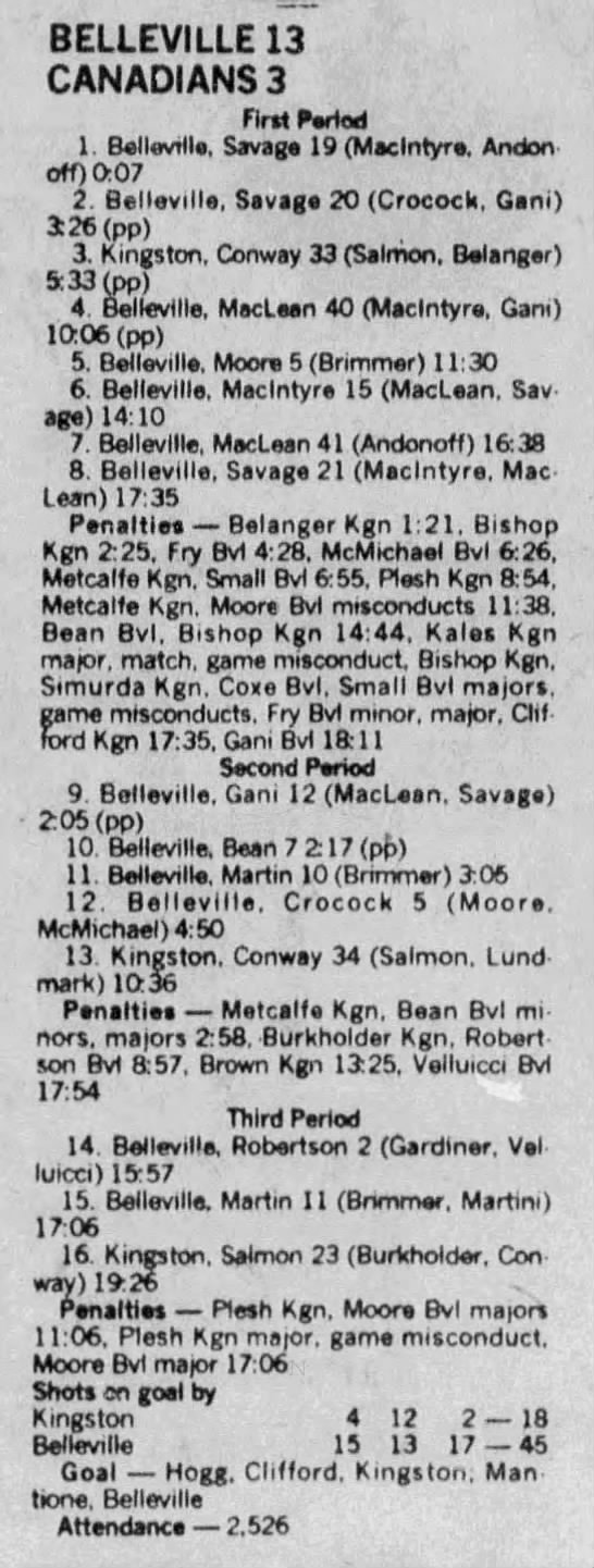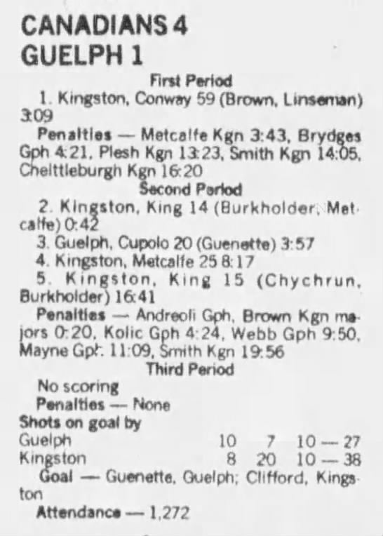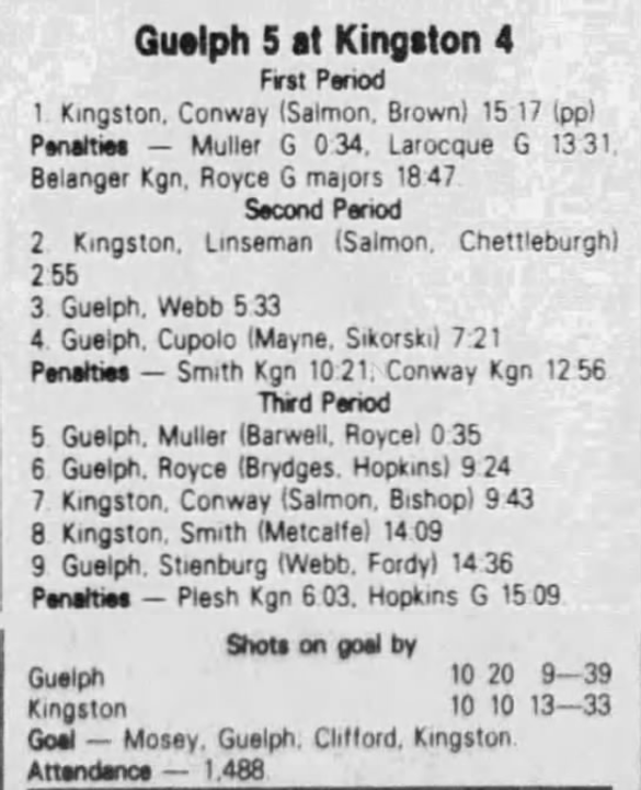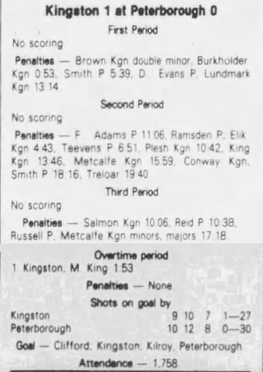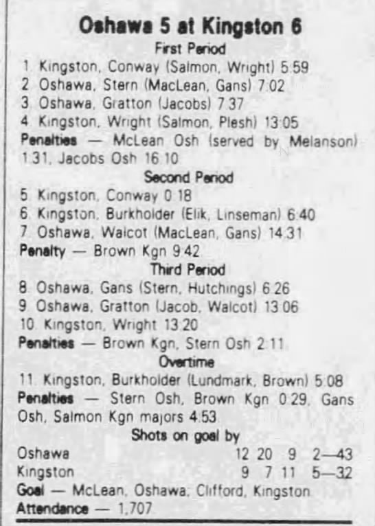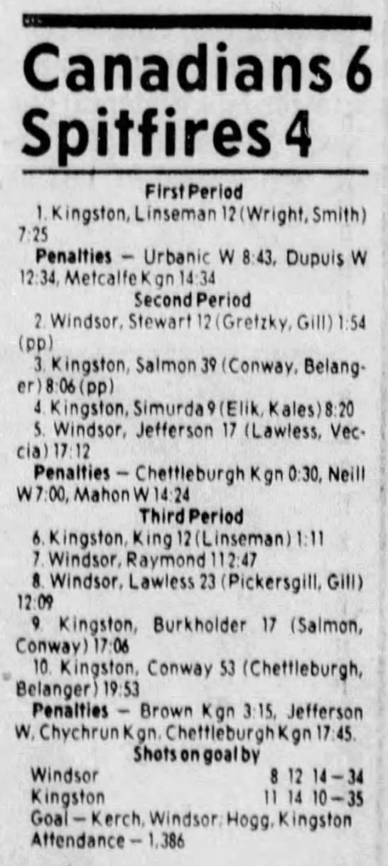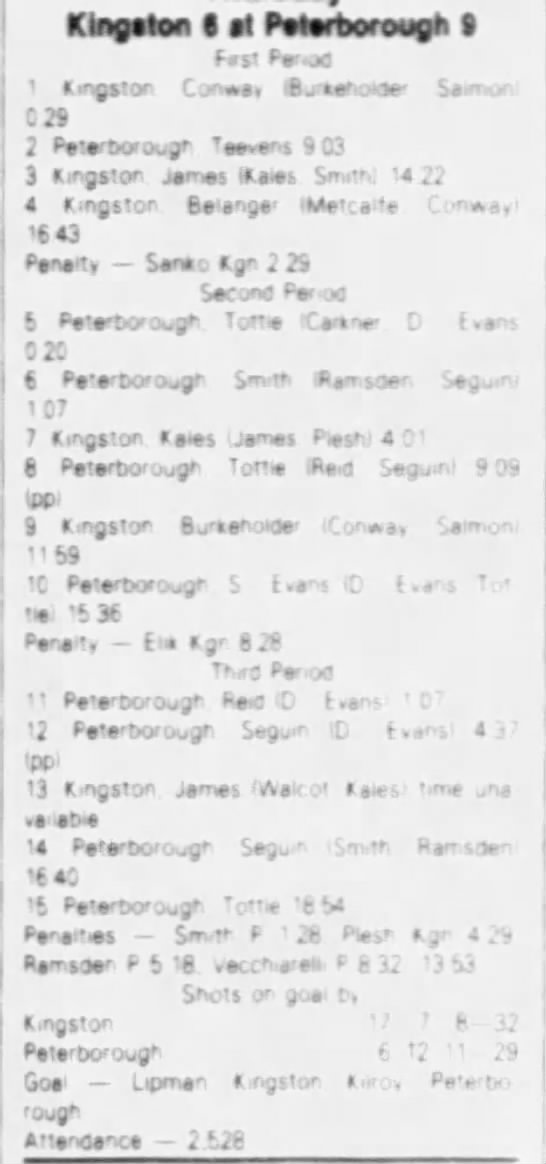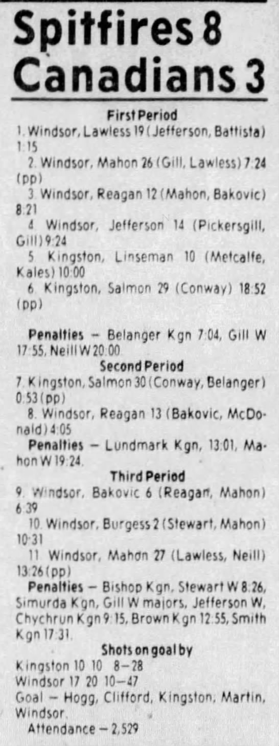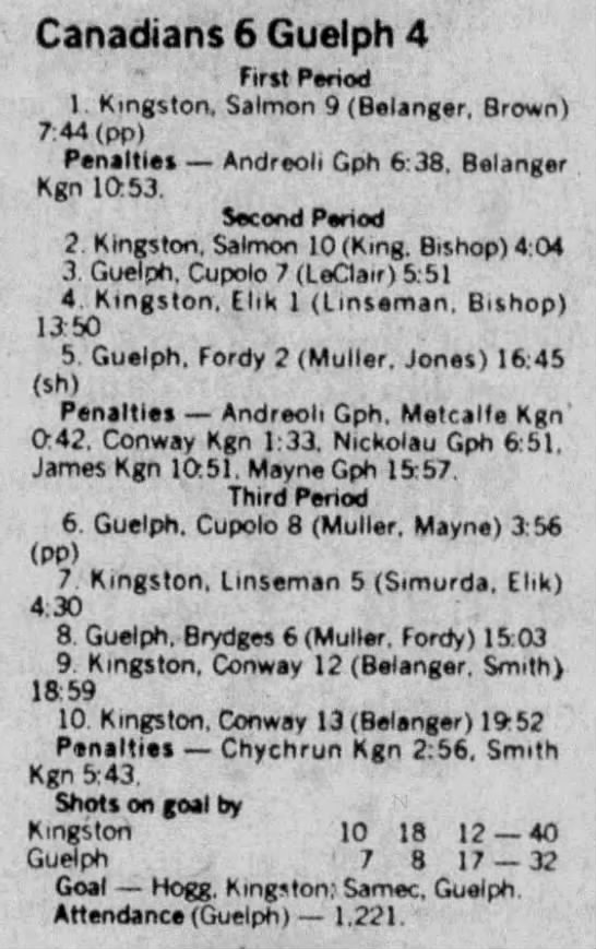 Here are the boxscores from the 1983-84 Kingston Canadians season. Every boxscore from that year are here (70/70 boxscores). If you have any of the games that are missing, please send them my way.