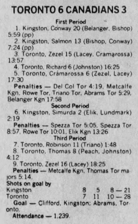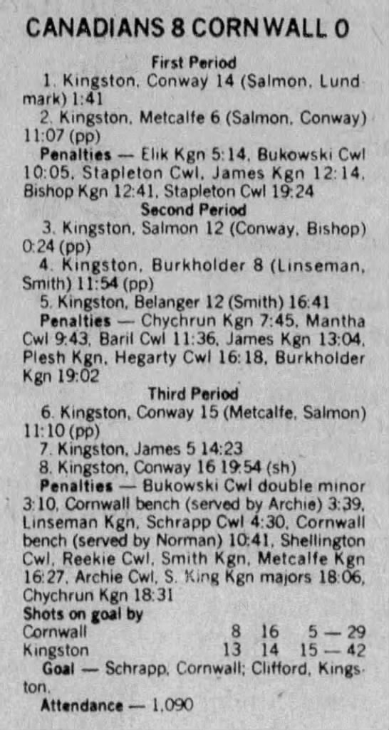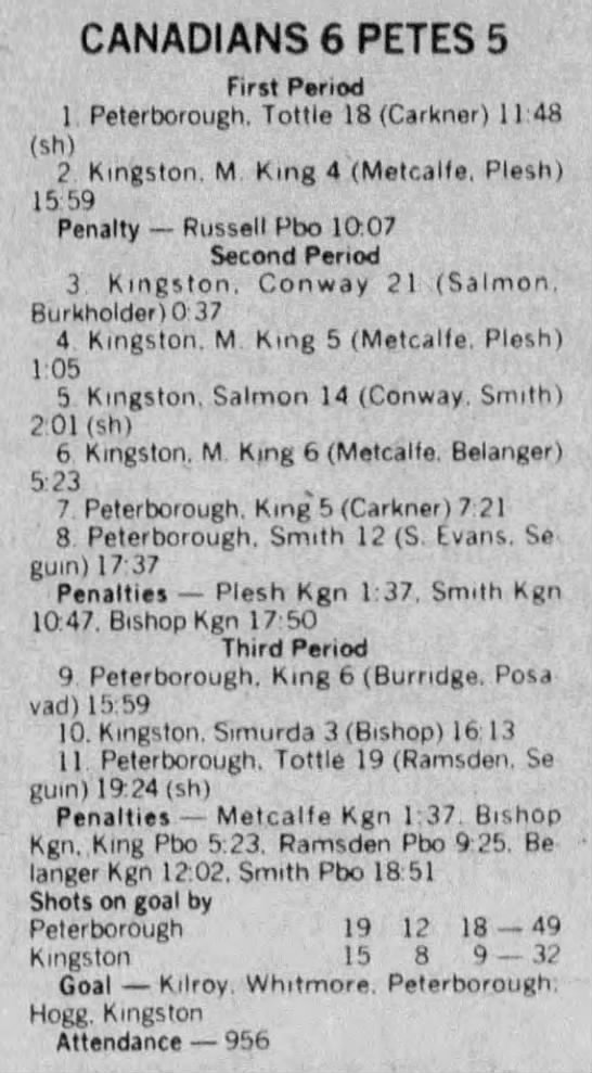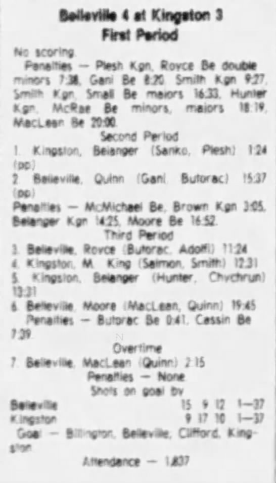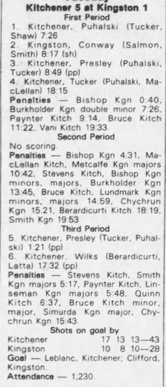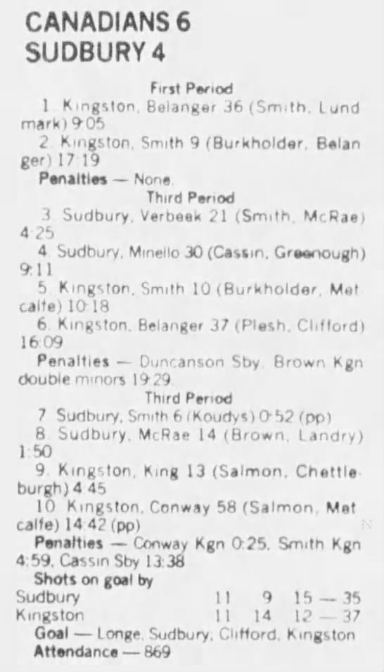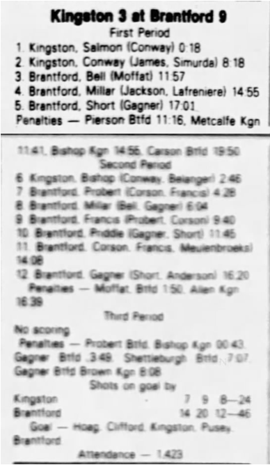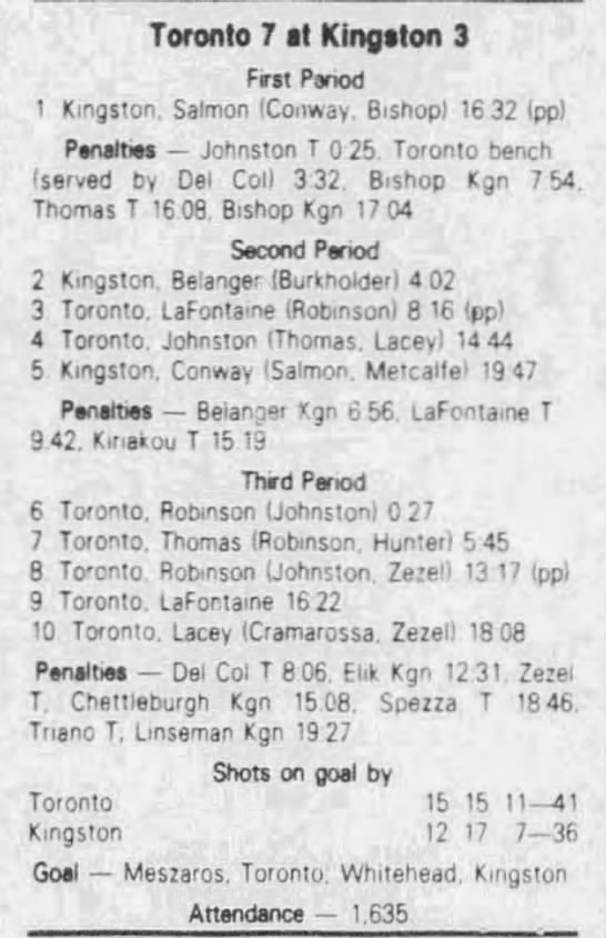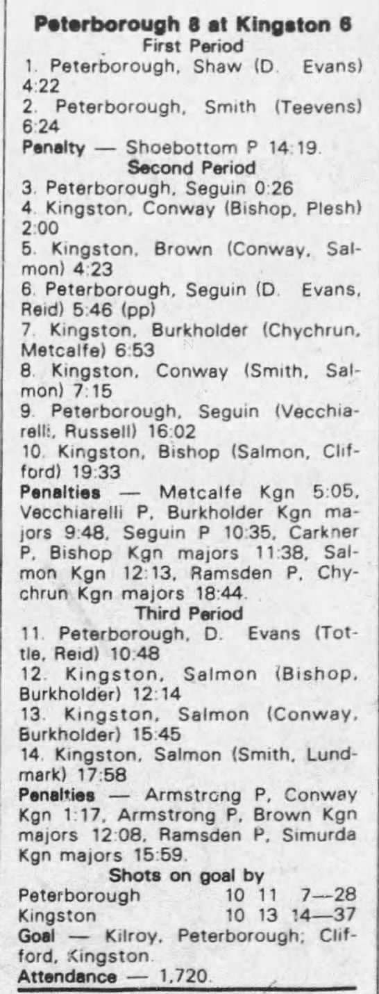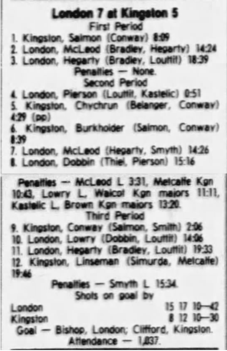 Here are the boxscores from the 1983-84 Kingston Canadians season. Every boxscore from that year are here (70/70 boxscores). If you have any of the games that are missing, please send them my way.
