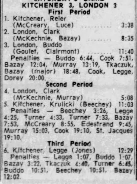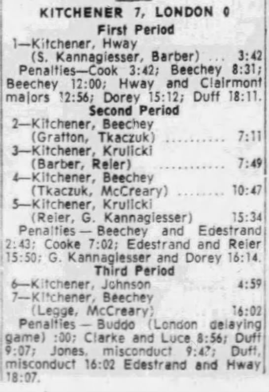 February 22 1966- Kitchener @ London (6-4 London)