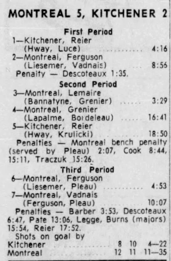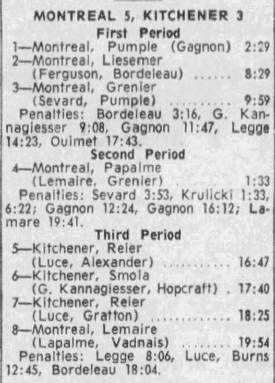 February 17 1966- Kitchener @ Montreal