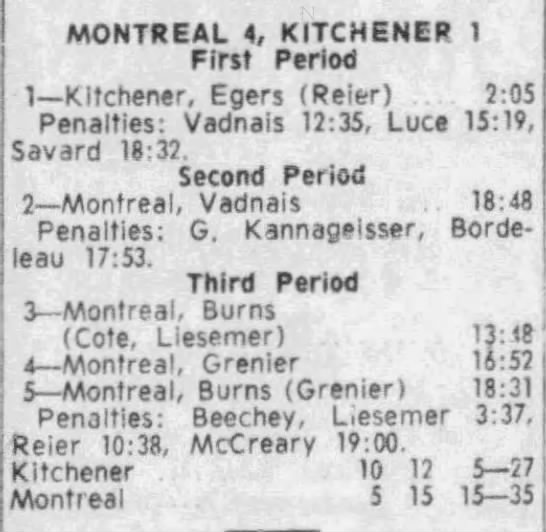 November 28 1965- Kitchener @ Montreal