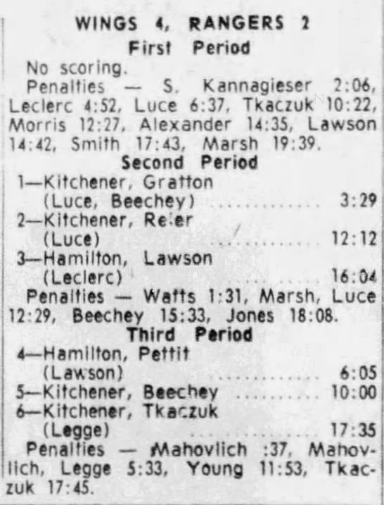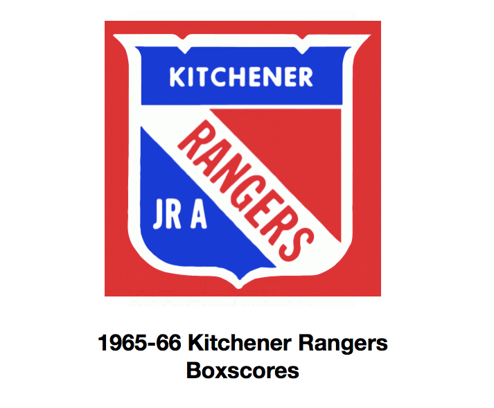 Here are the boxscores from the 1965-66 Kitchener Rangers season. Most of the boxscores from that season are here (57/67 boxscores). If you have any of the games that are missing, please send them my way.