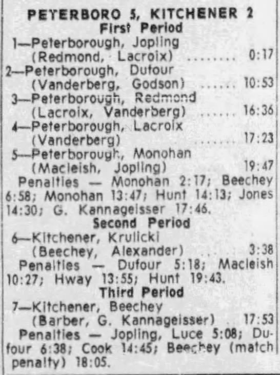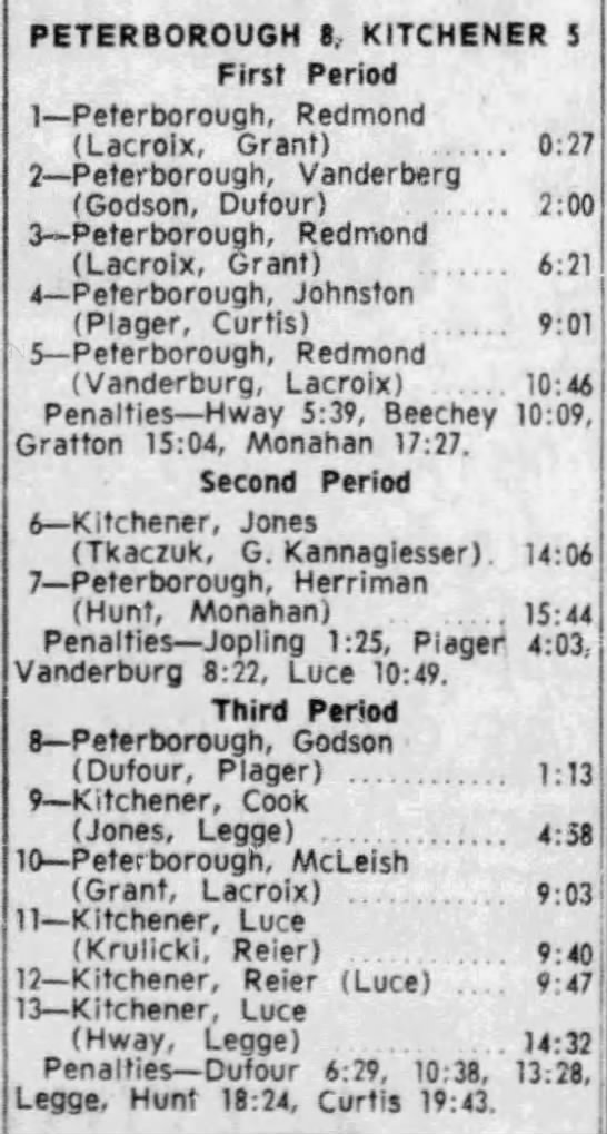 January 16 1966- Peterborough @ Kitchener