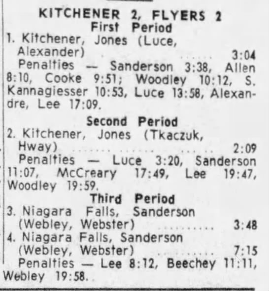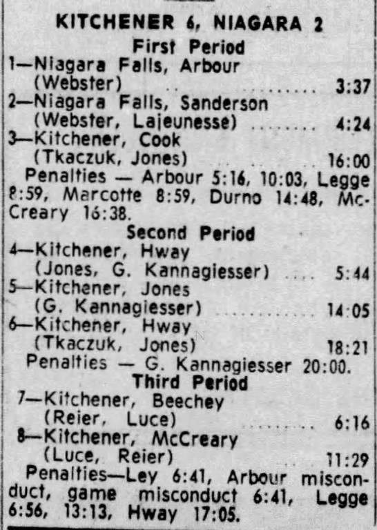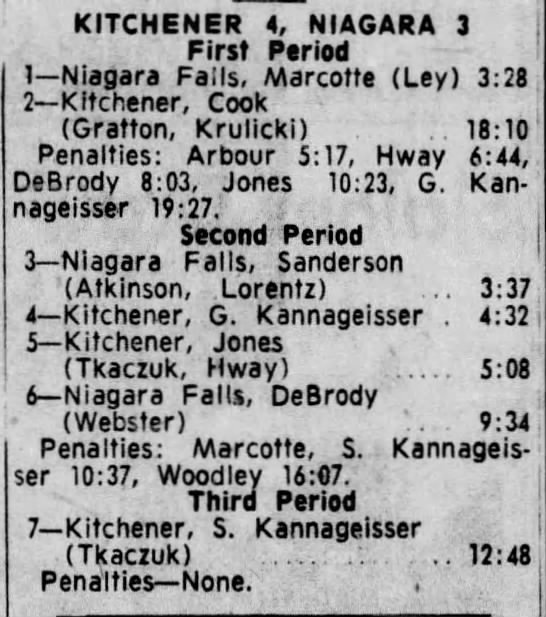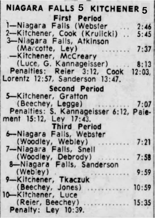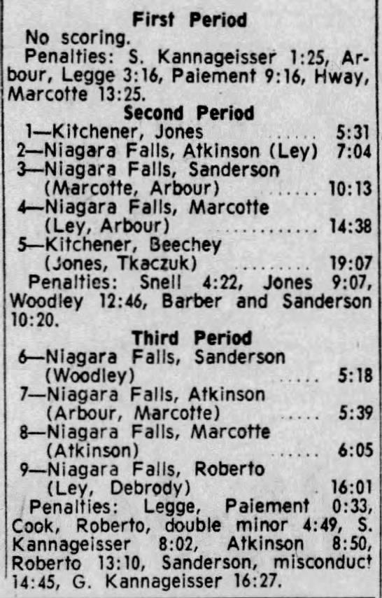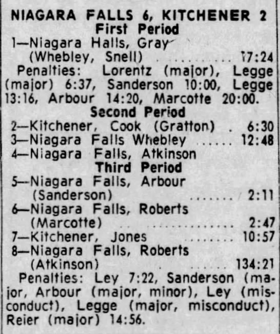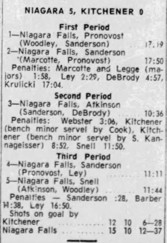 October 29 1965- Kitchener @ Niagara Falls (5-3 Niagara Falls)
