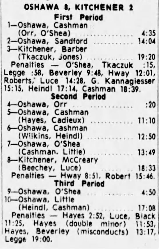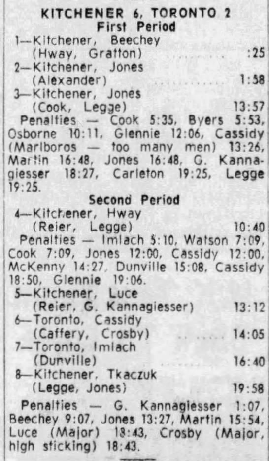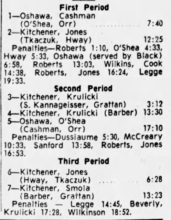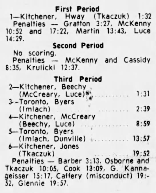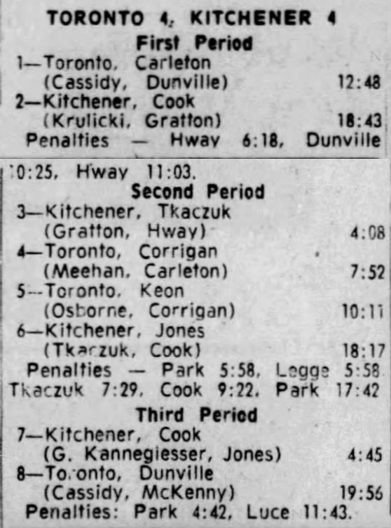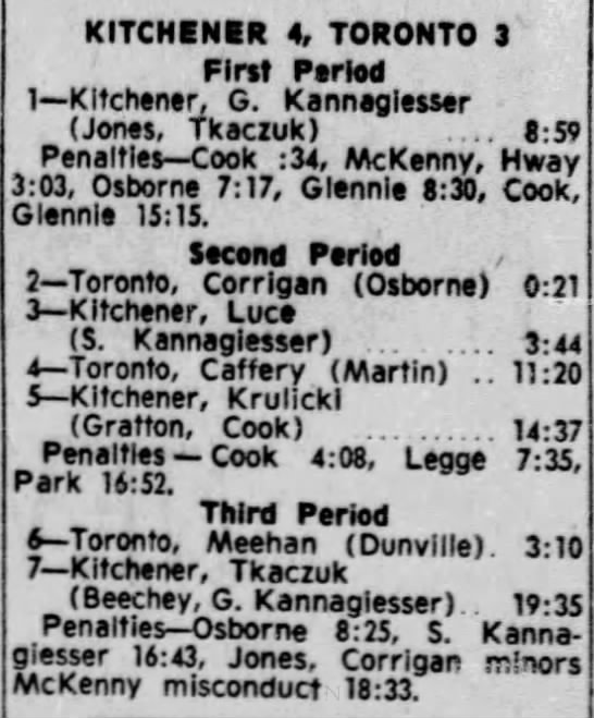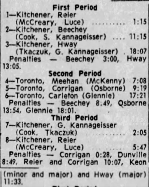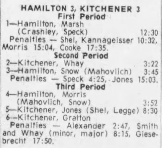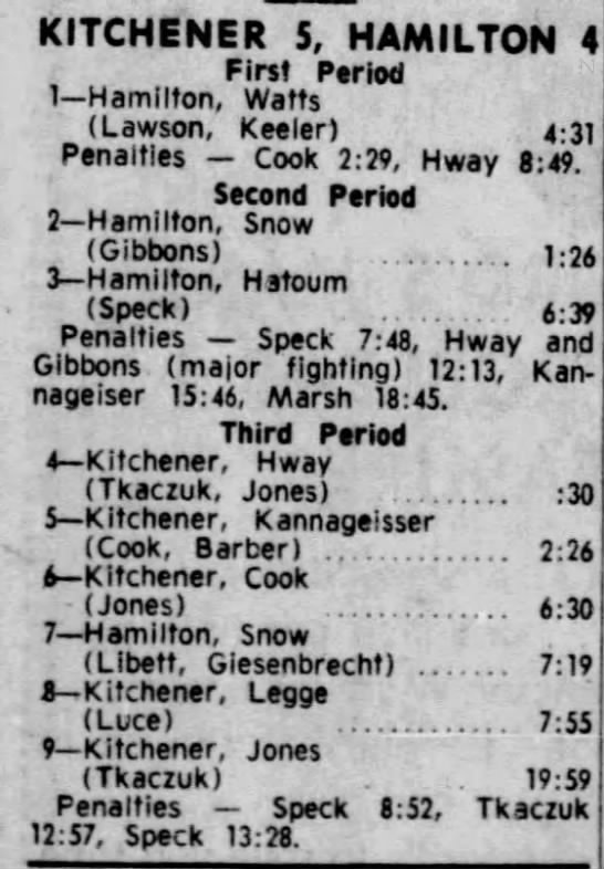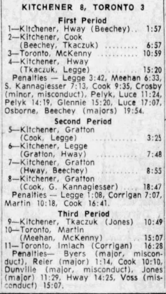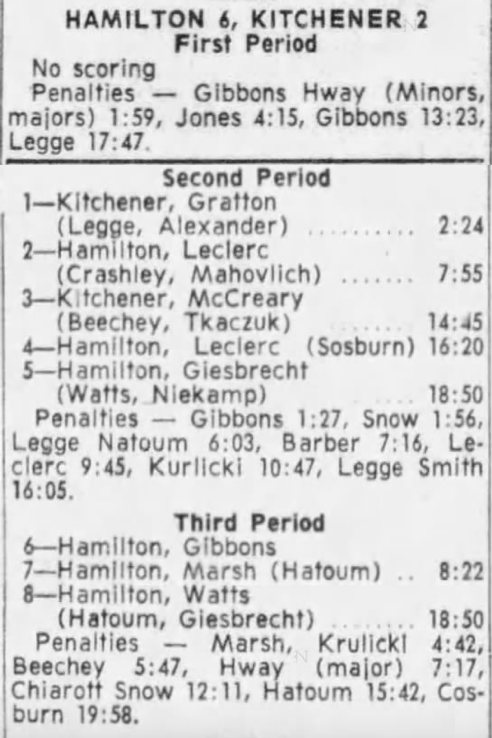 October 14 1965- Kitchener @ Hamilton (8-6 Kitchener)