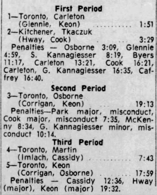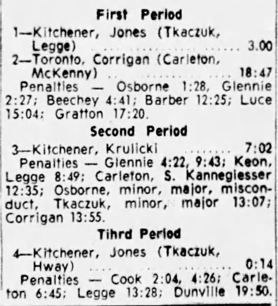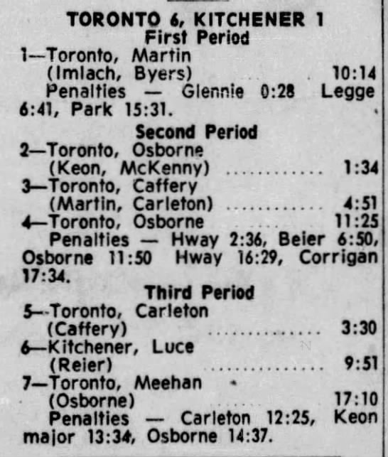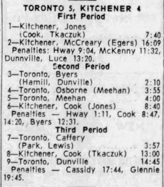 October 22 1965- Toronto @ Kitchener (4-3 Toronto)