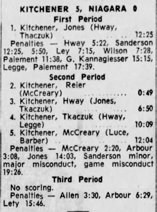 February 20 1966- Kitchener @ St. Catharines