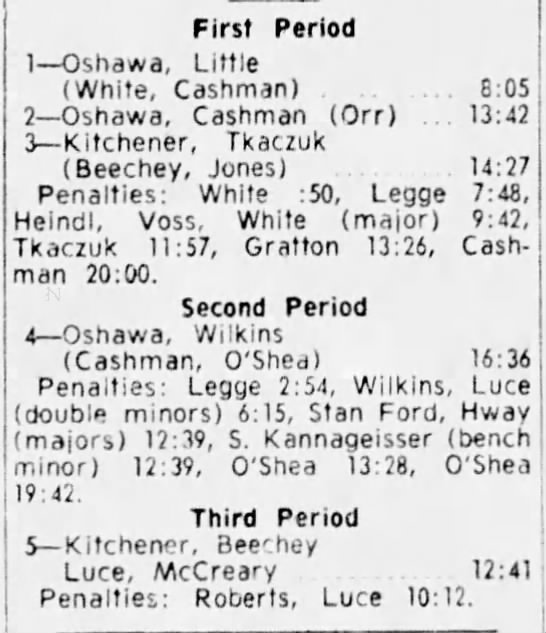 January 30 1966- Oshawa @ Kitchener