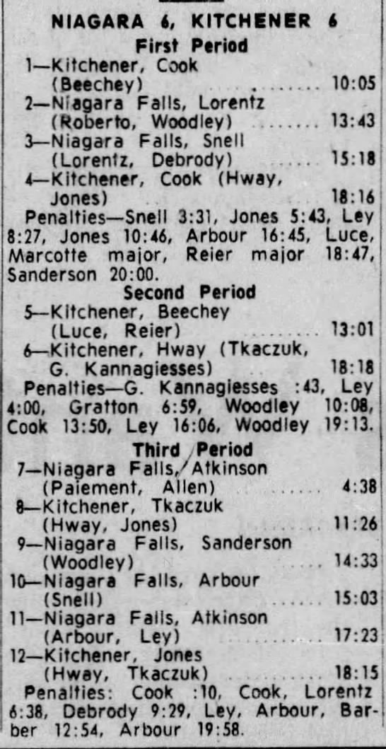 October 31 1965- Niagara Falls @ Kitchener (4-4 Tie)