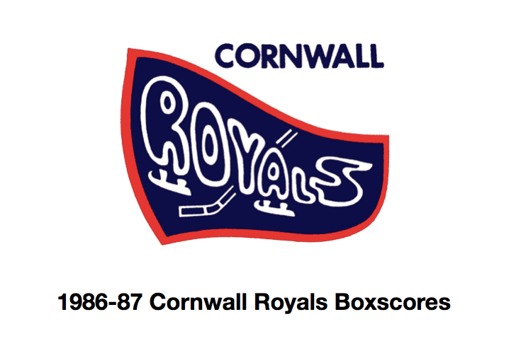 Here are the boxscores from the 1986-87 Cornwall Royals season. There are some scores that are missing but any of the scores that were posted in the Ottawa Citizen are here (52/71 boxscores). If you have any of the games that are missing, please send them my way.