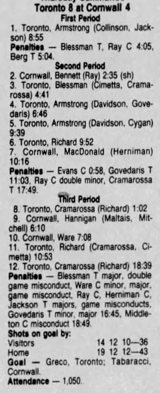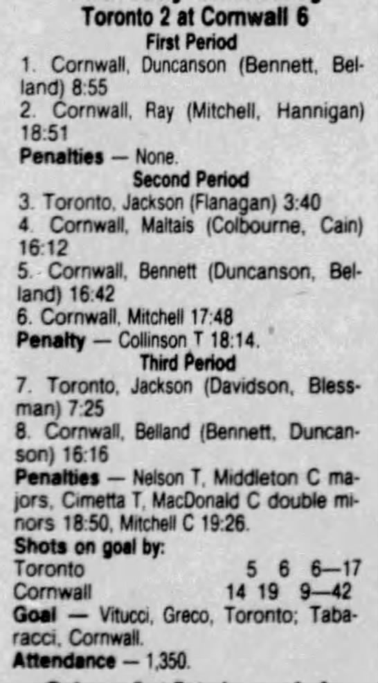 March 14 1987- Cornwall @ Toronto (9-5 Cornwall)