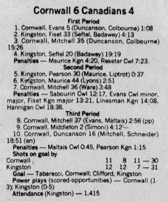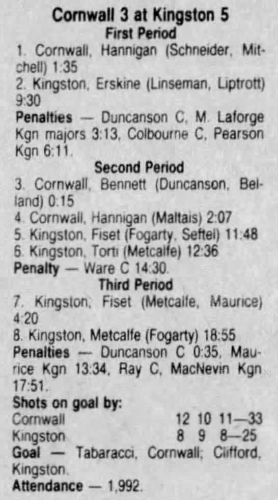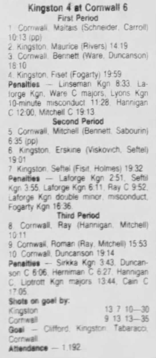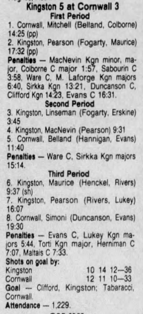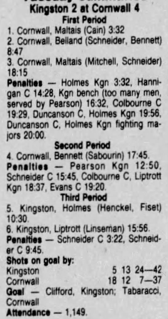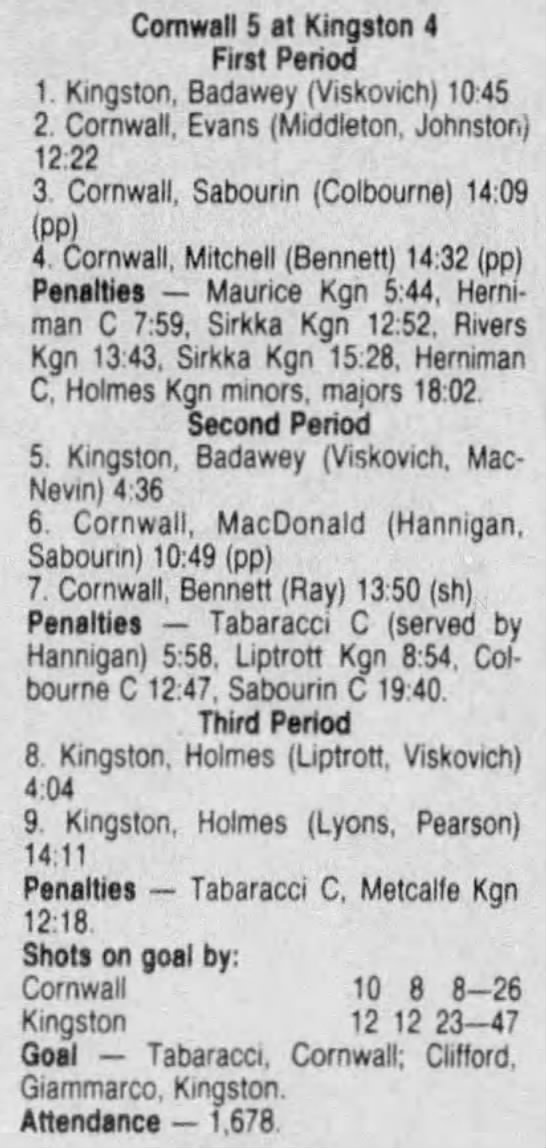 December 5 1986- Cornwall @ Kingston