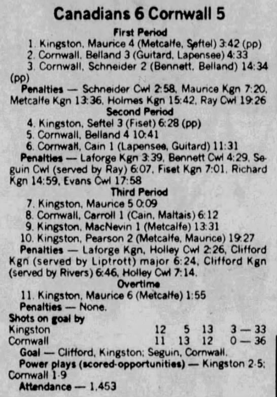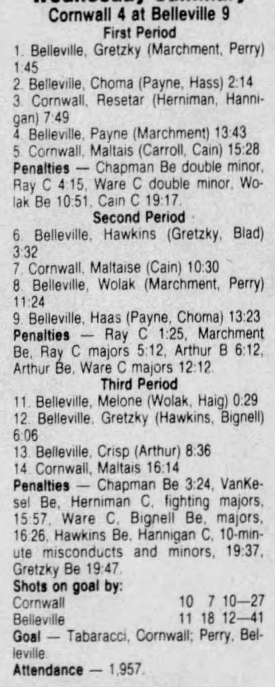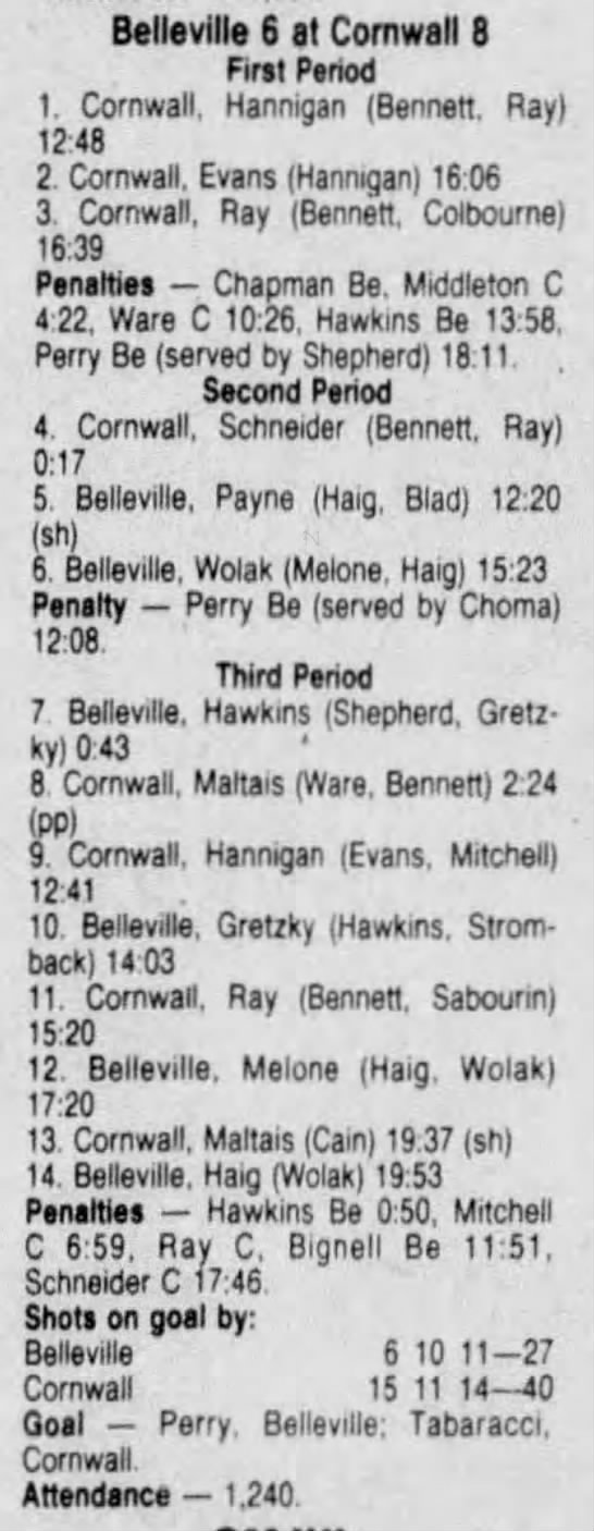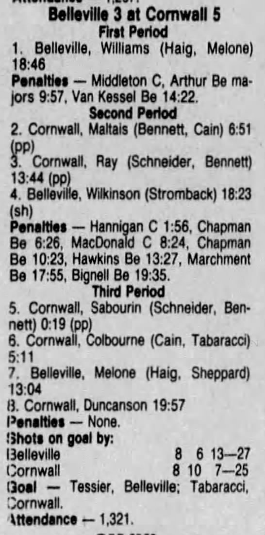 February 4 1987- Cornwall @ Belleville (9-5 Belleville)