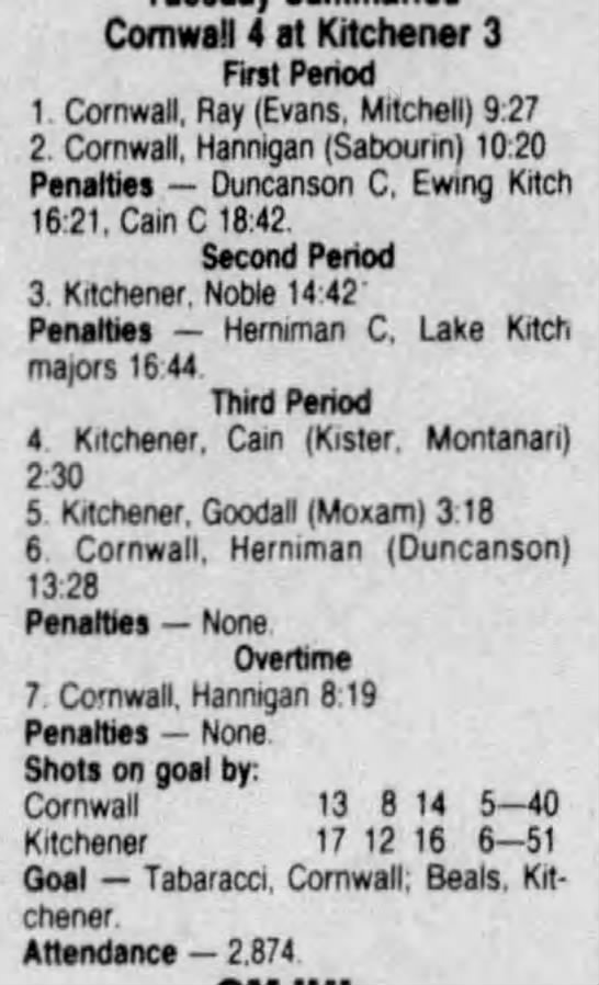February 17 1987- Kitchener @ Cornwall