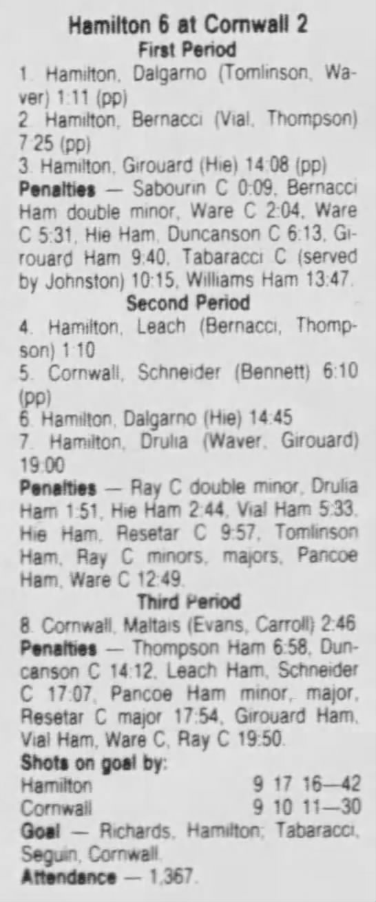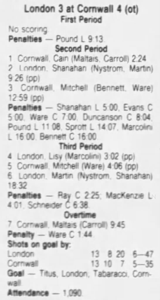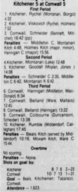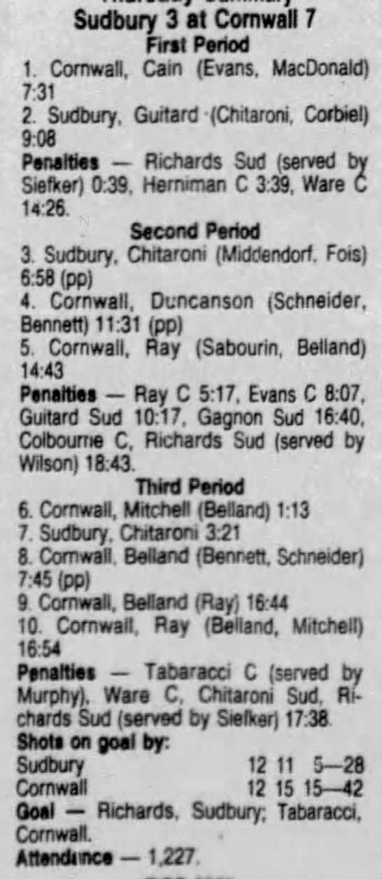 October 17 1986- Cornwall @ Sudbury (7-3 Sudbury)