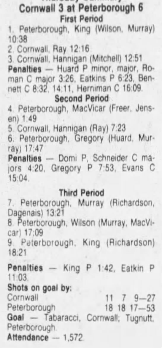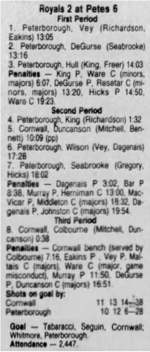 January 31 1987- Cornwall @ Peterborough (8-3 Peterborough)
