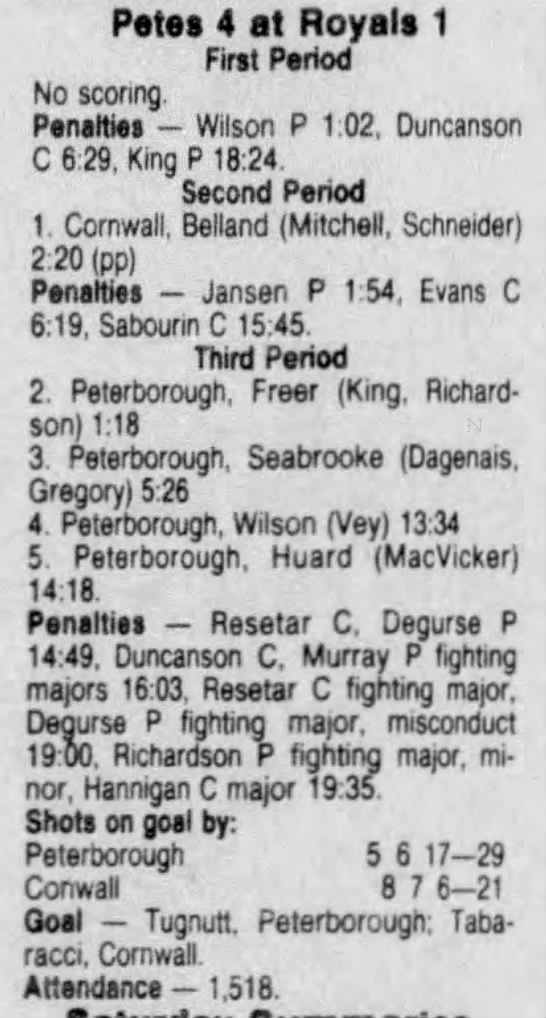 March 1 1987- Peterborough @ Cornwall