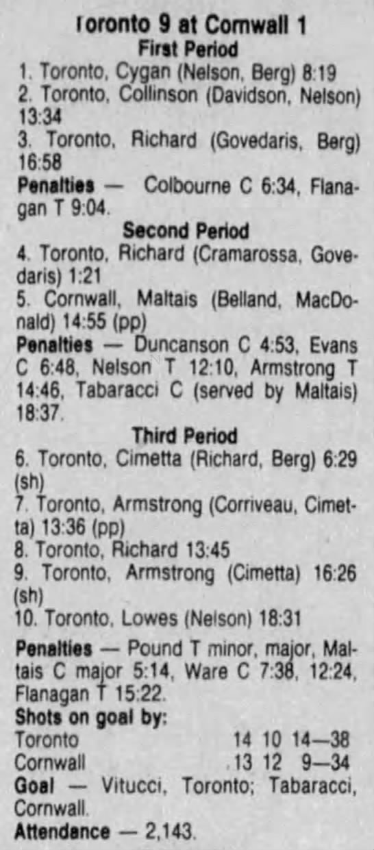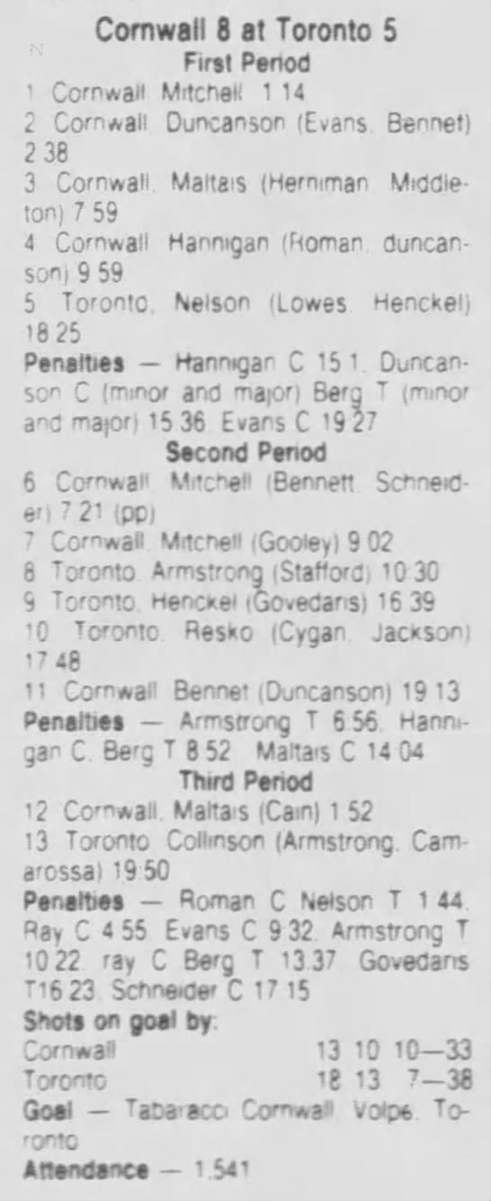 October 9 1986- Toronto @ Cornwall (7-5 Cornwall)