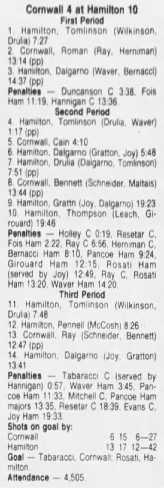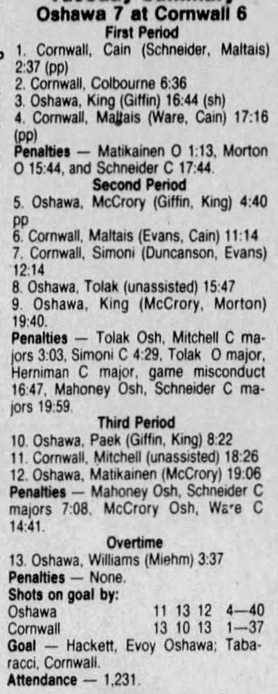 March 8 1987- Cornwall @ Oshawa (4-4 Tie)