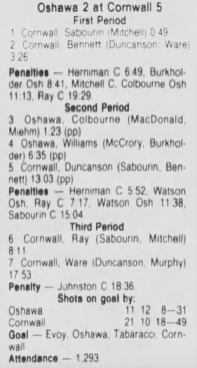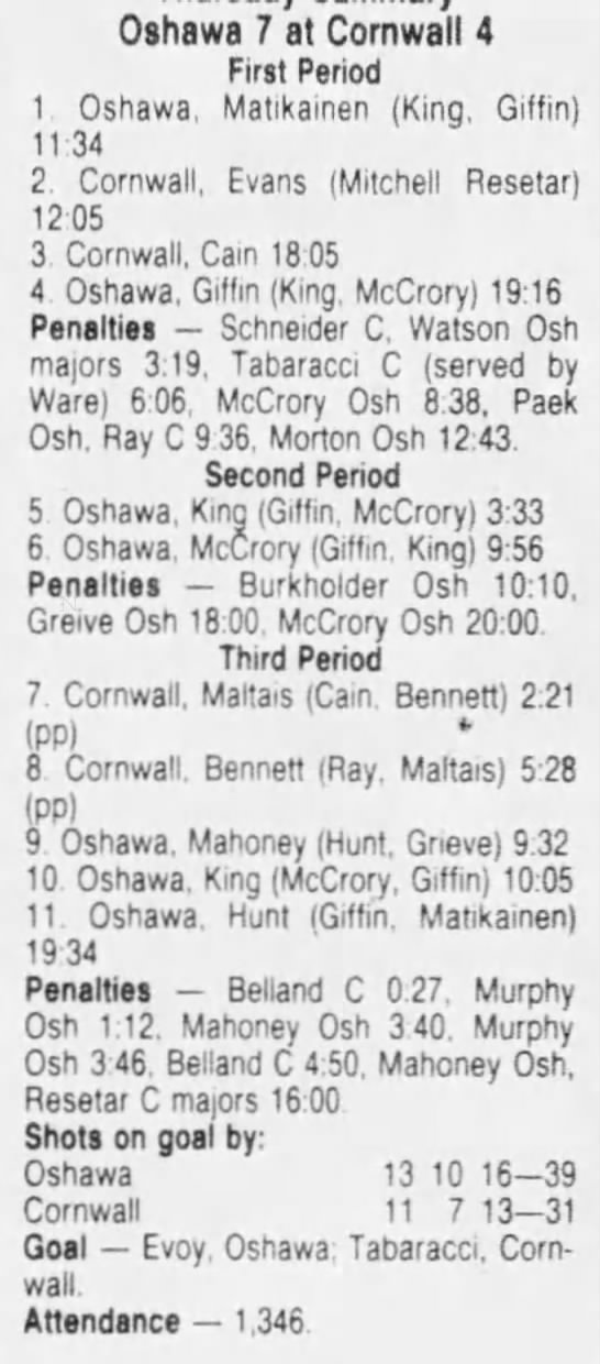 March 5 1987- Oshawa @ Cornwall (6-2 Oshawa)