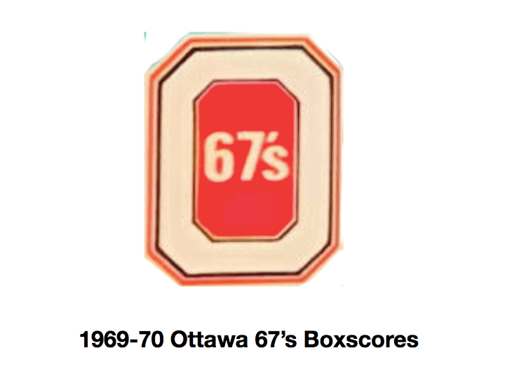 Here are the boxscores from the 1969-70 Ottawa 67’s season. All except two of them are here (57/59 boxscores). If you have any of the games that are missing, please send them my way.