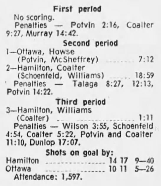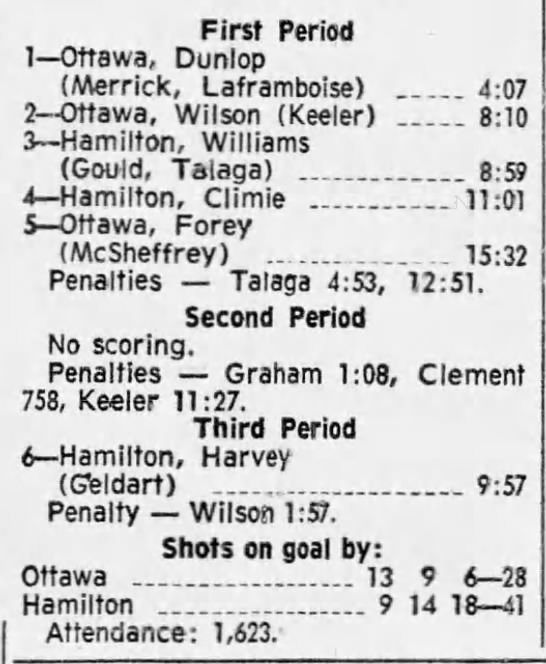 February 15 1970- Hamilton @ Ottawa
