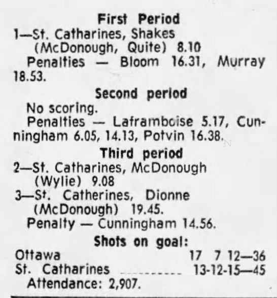 February 13 1970- St. Catharines @ Ottawa