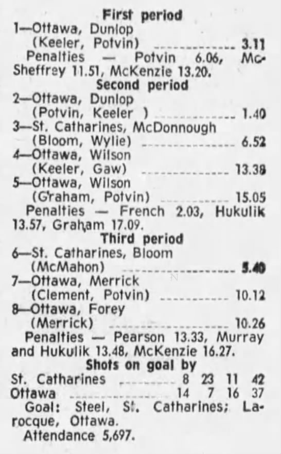 March 1 1970- Ottawa @ St. Catharines