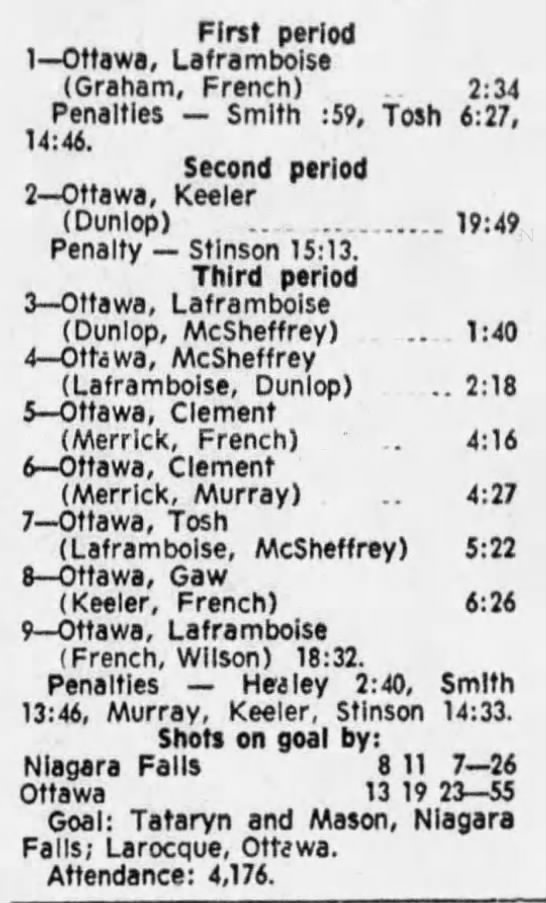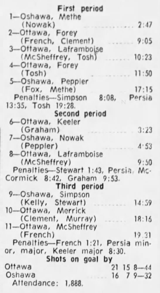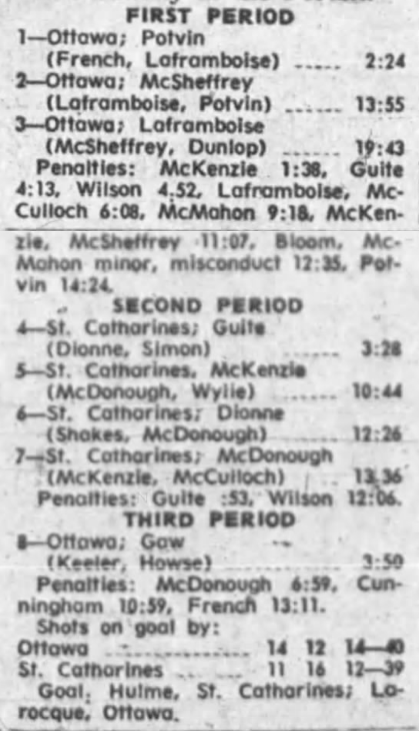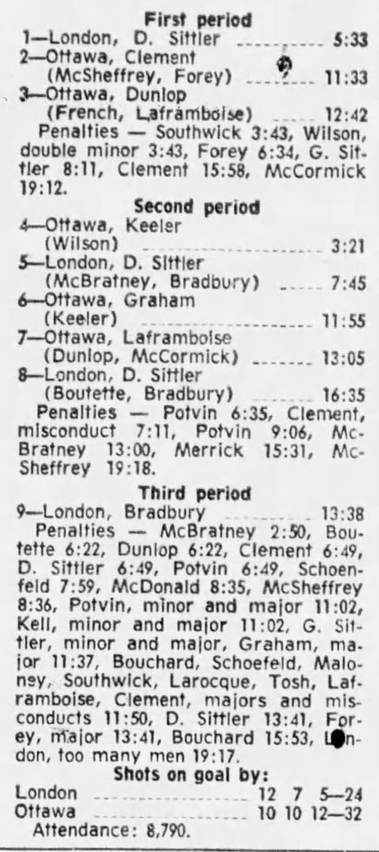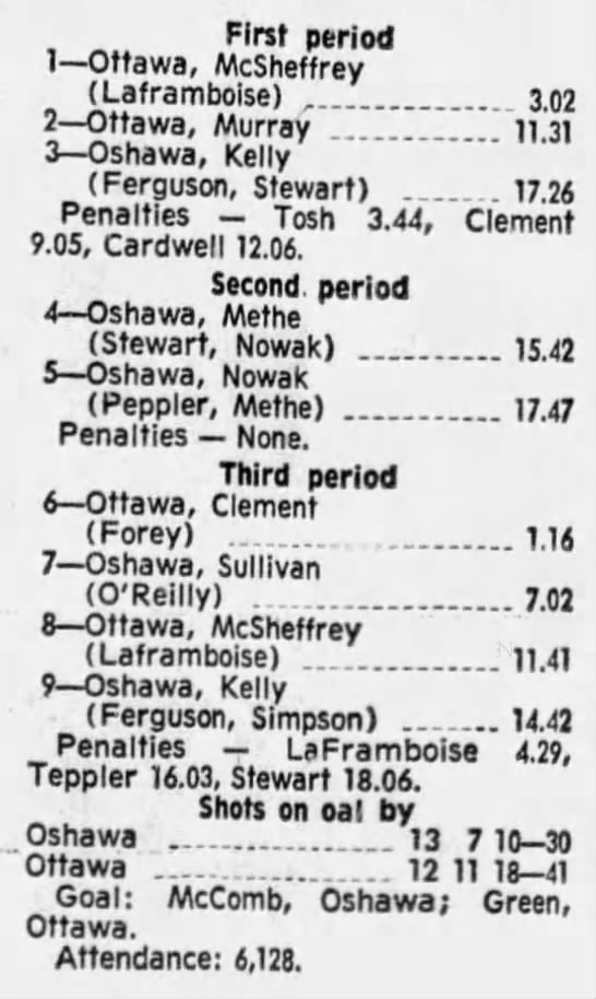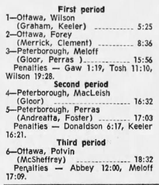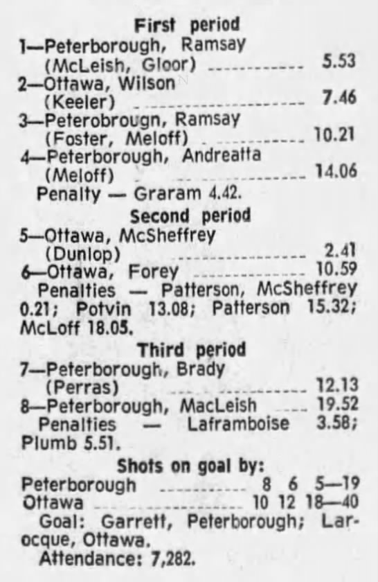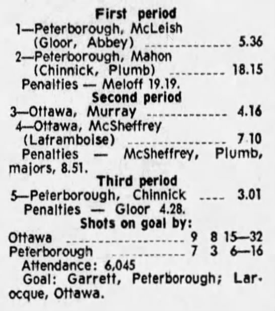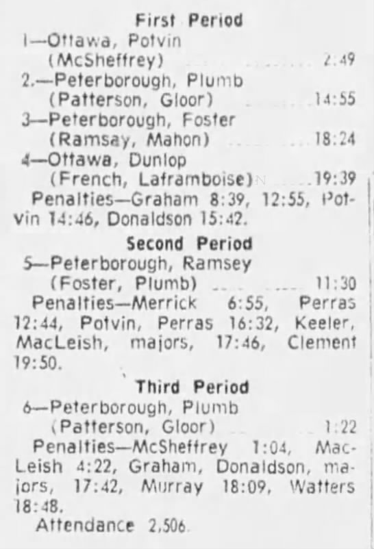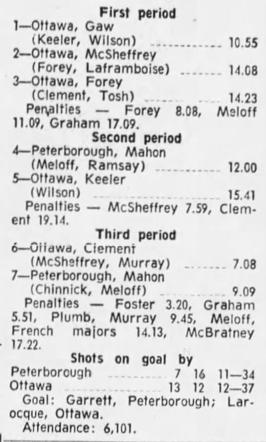 October 9 1969- Ottawa @ Peterborough (8-4 Peterborough)