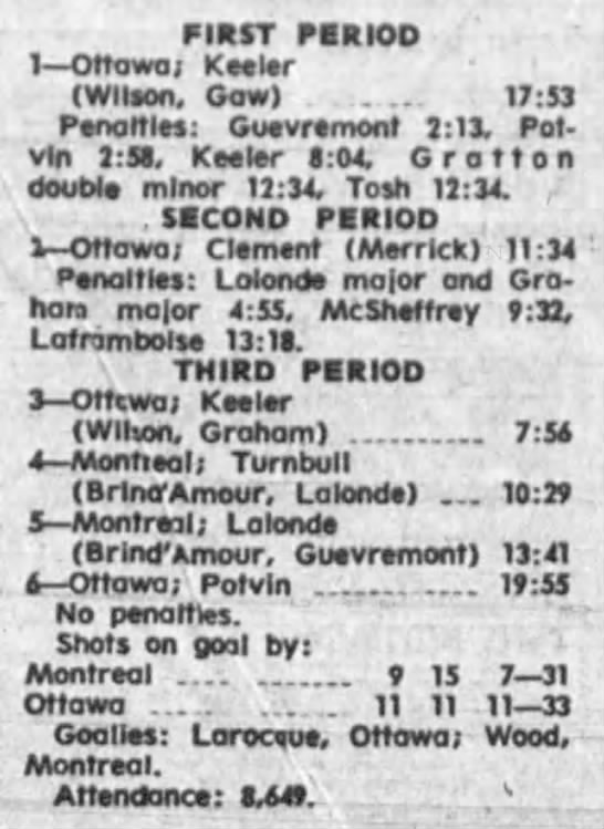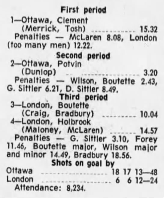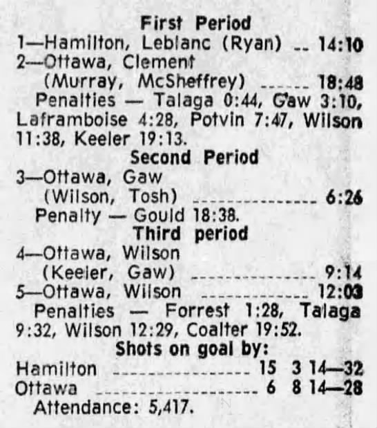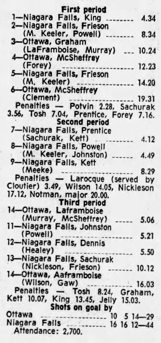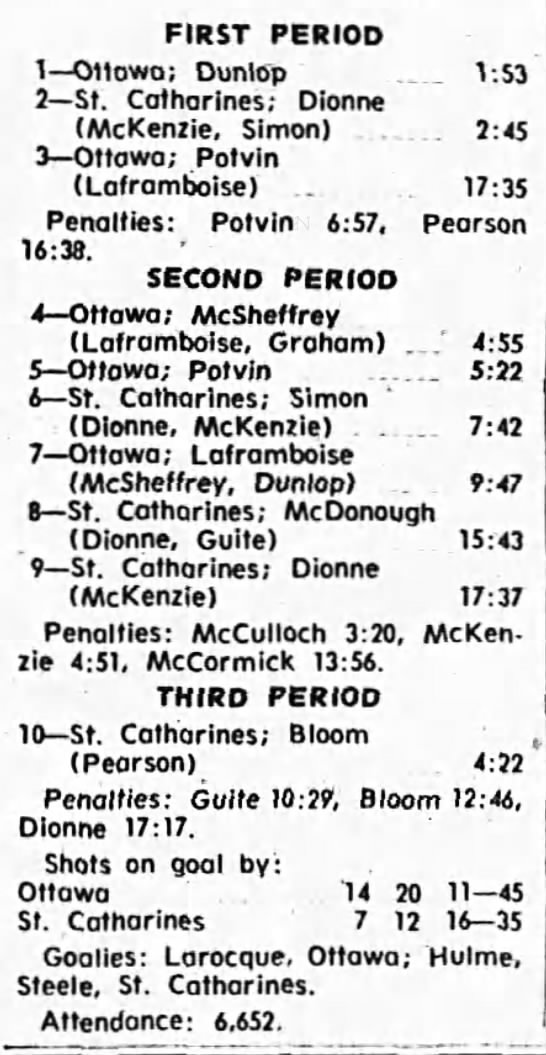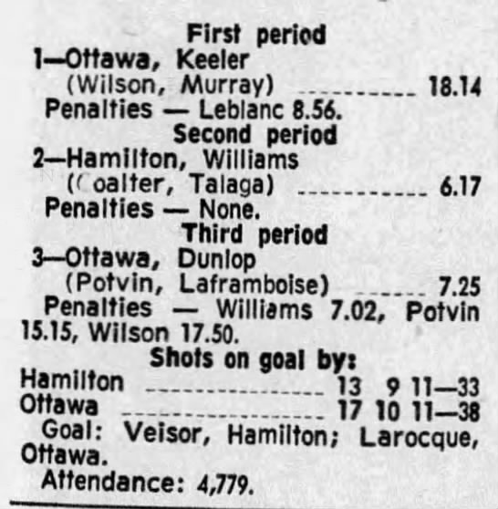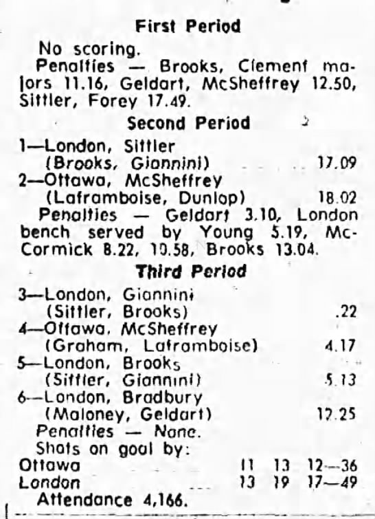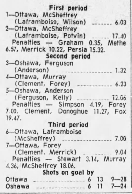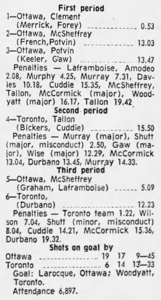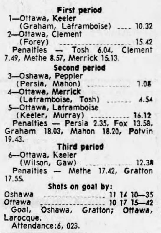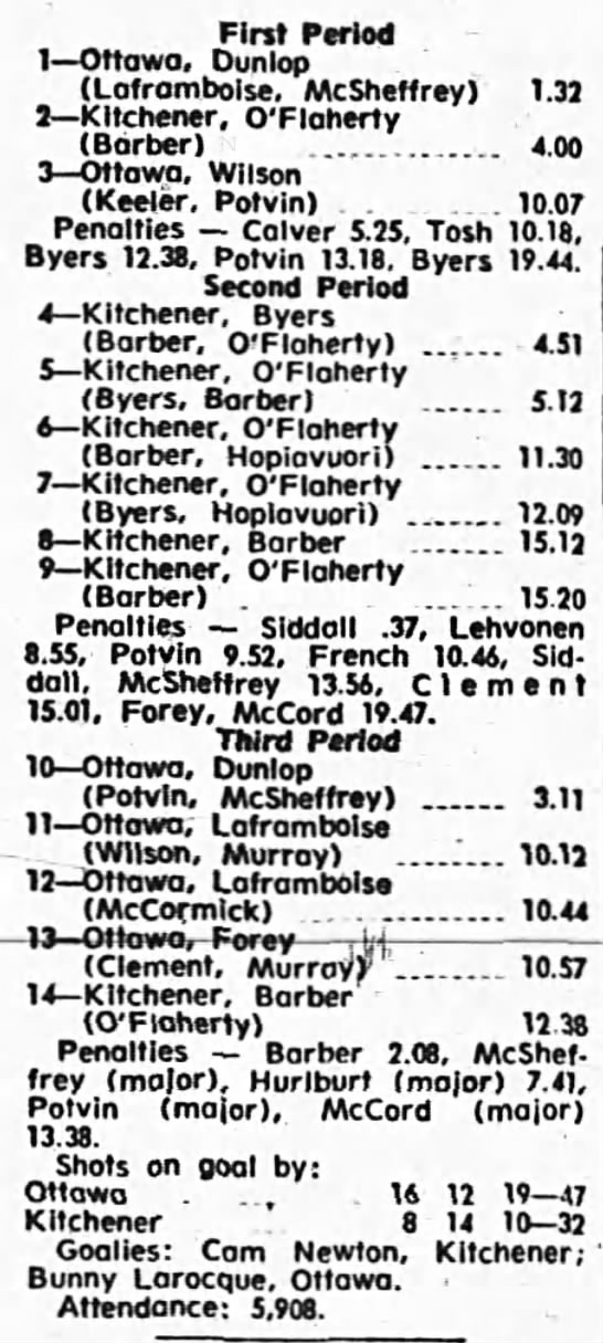 October 9 1969- Ottawa @ Peterborough (8-4 Peterborough)