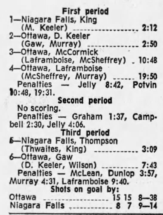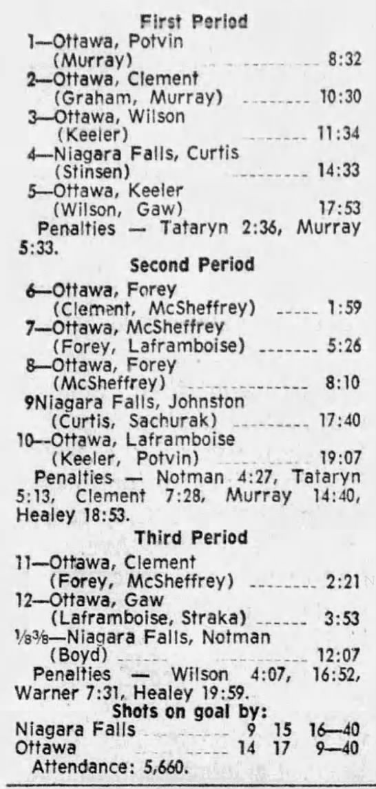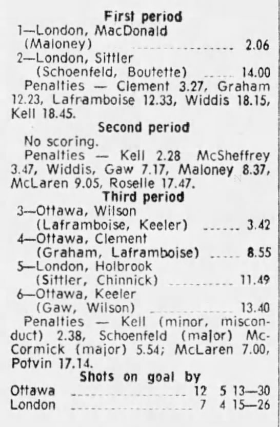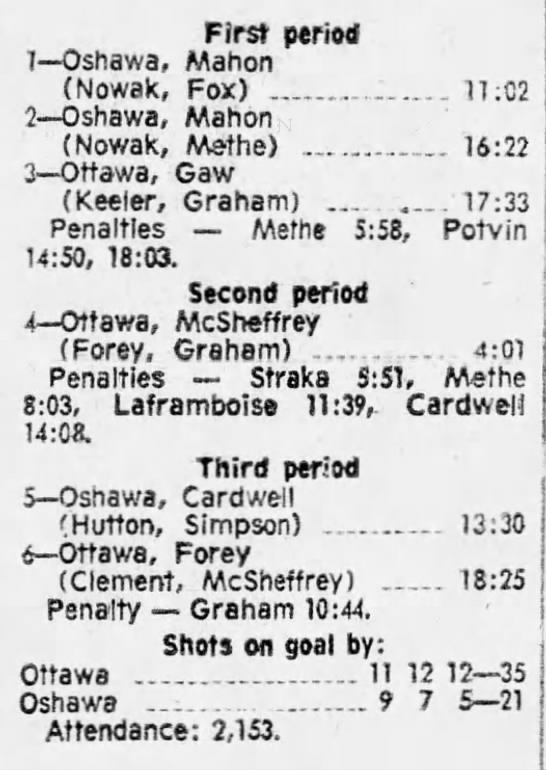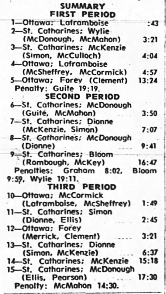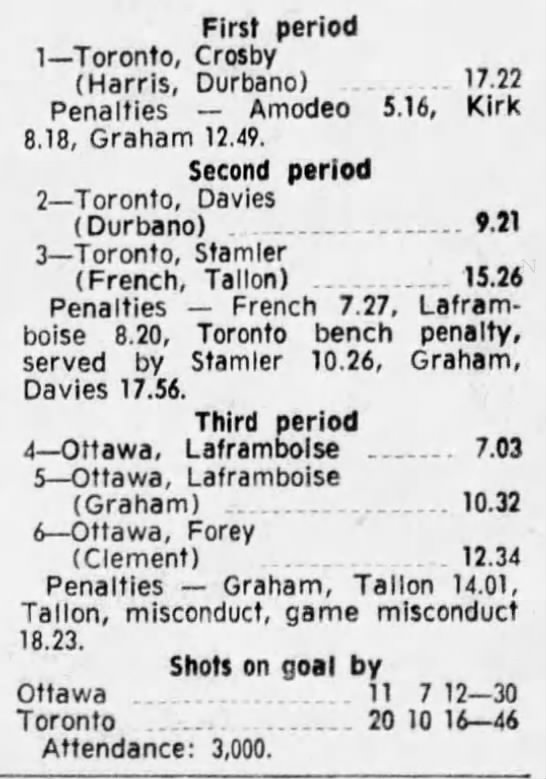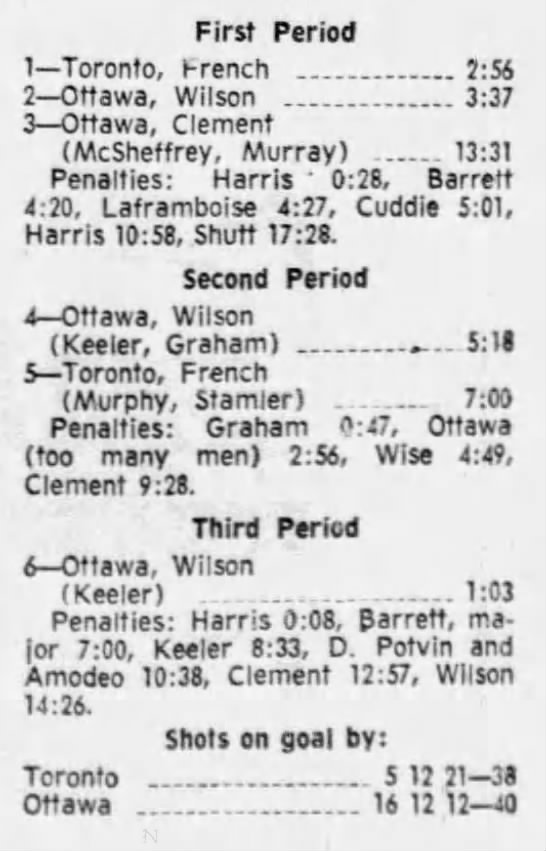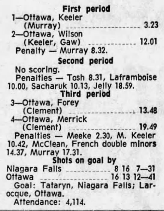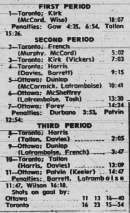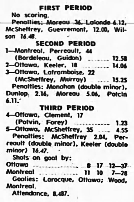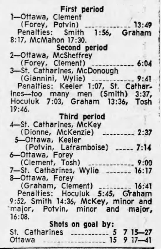 October 9 1969- Ottawa @ Peterborough (8-4 Peterborough)