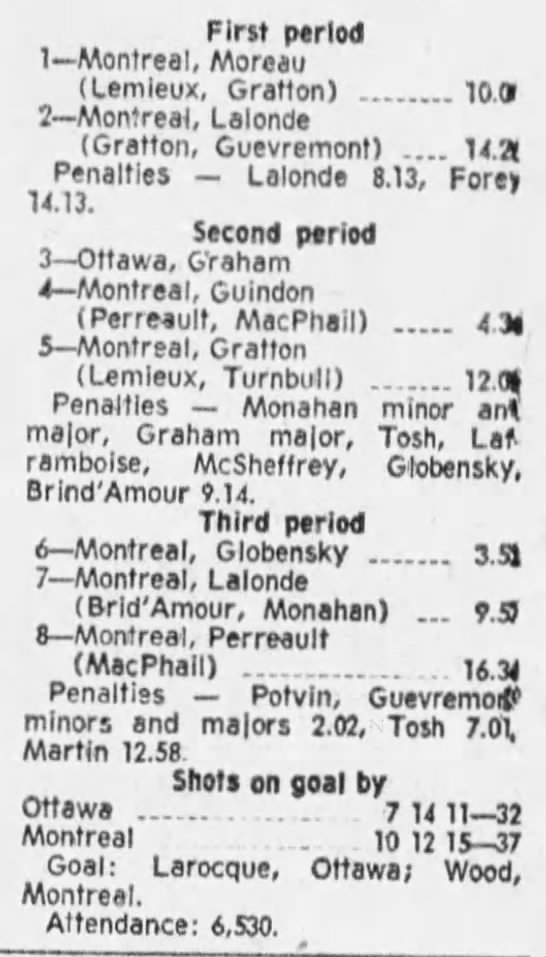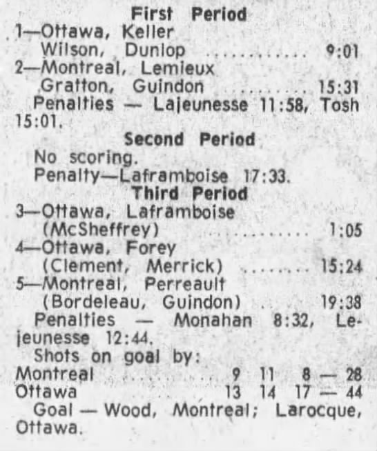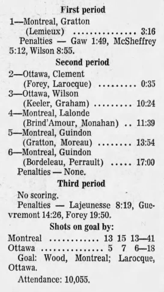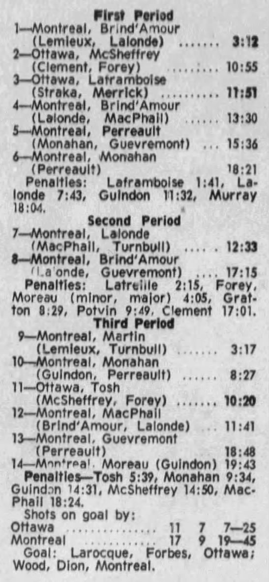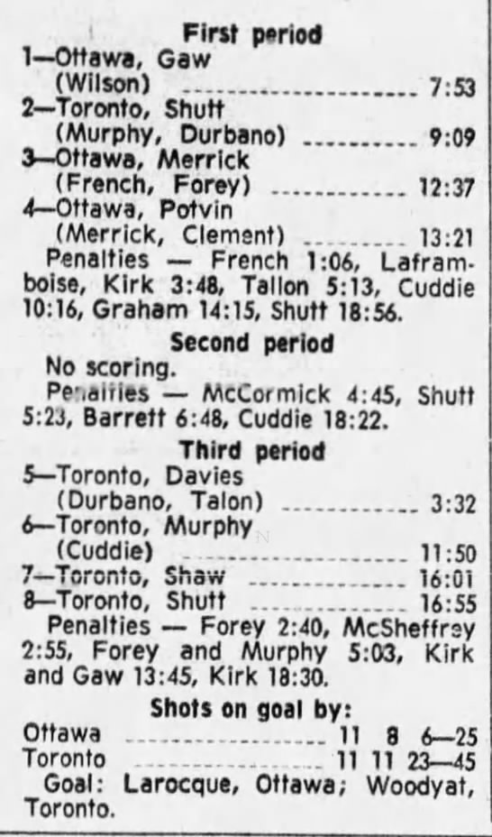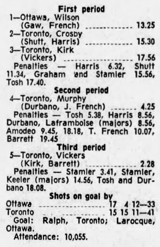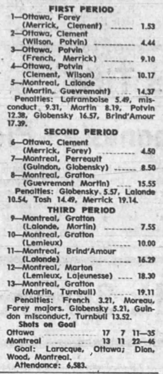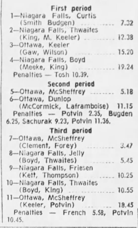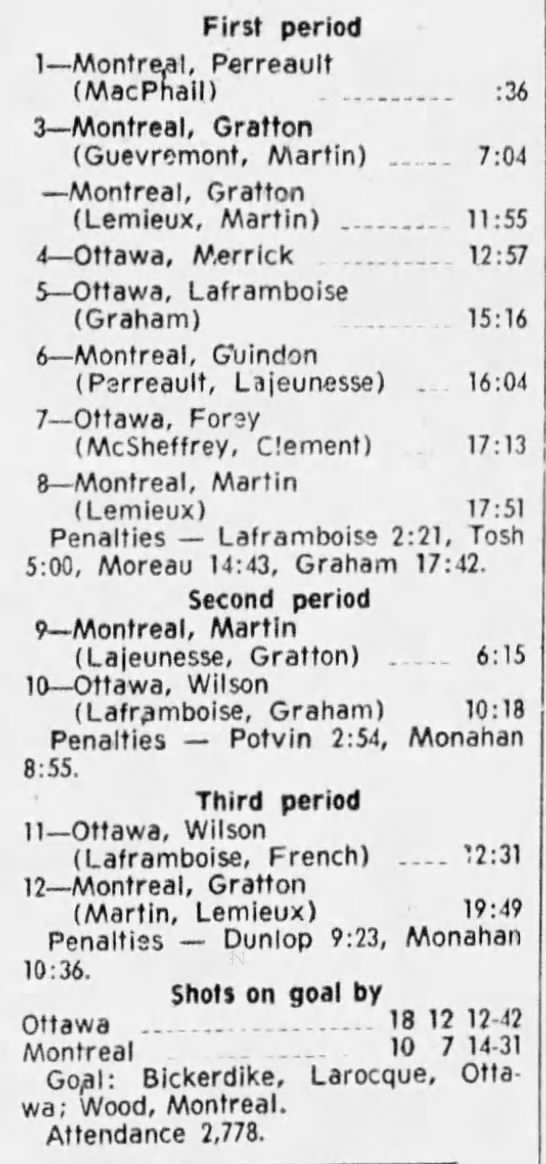 October 9 1969- Ottawa @ Peterborough (8-4 Peterborough)