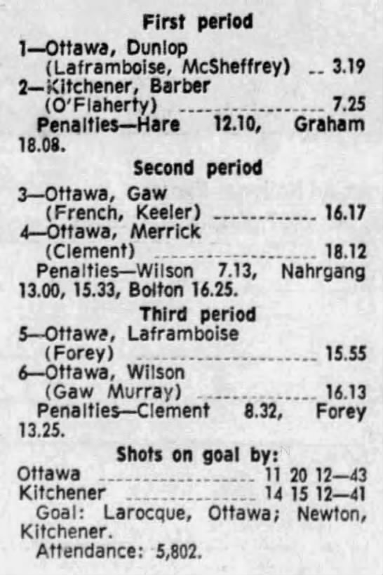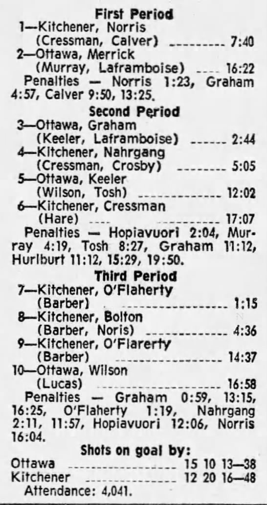 February 27 1970- Kitchener @ Ottawa