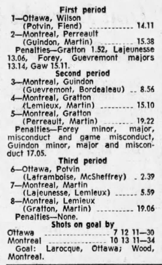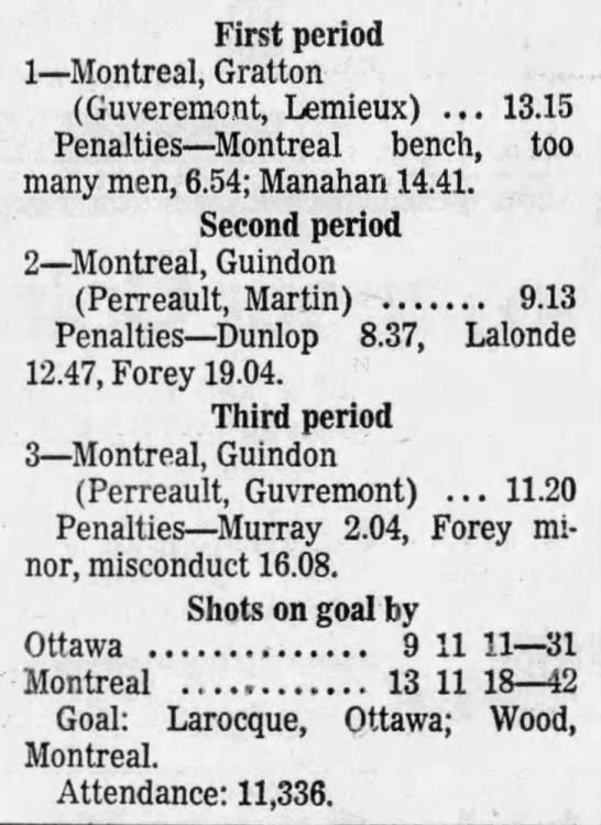 March 8 1970- Ottawa @ Montreal
