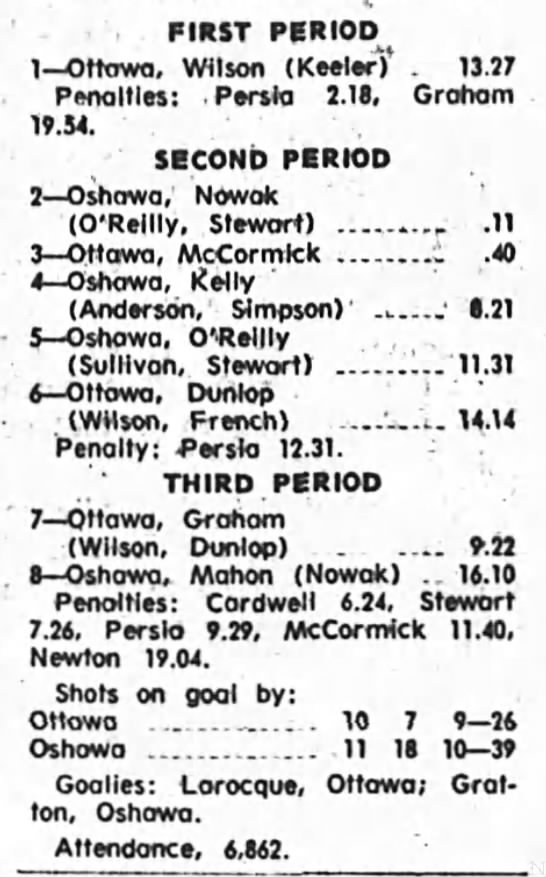 January 4 1970- Ottawa @ Oshawa