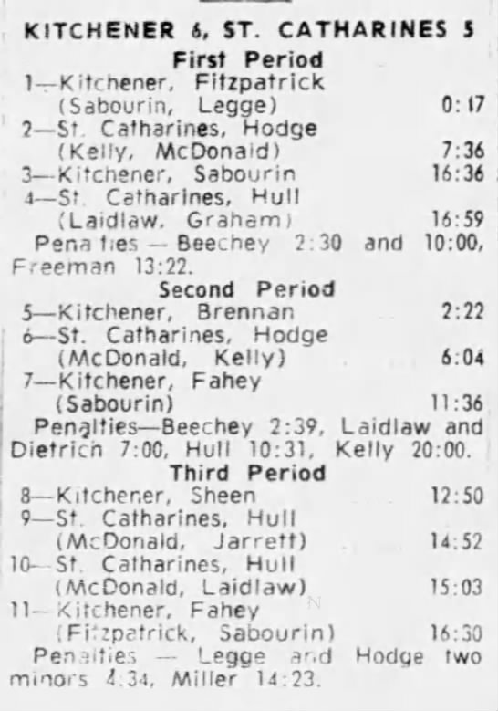March 3 1964- Kitchener @ St. Catharines