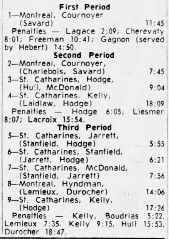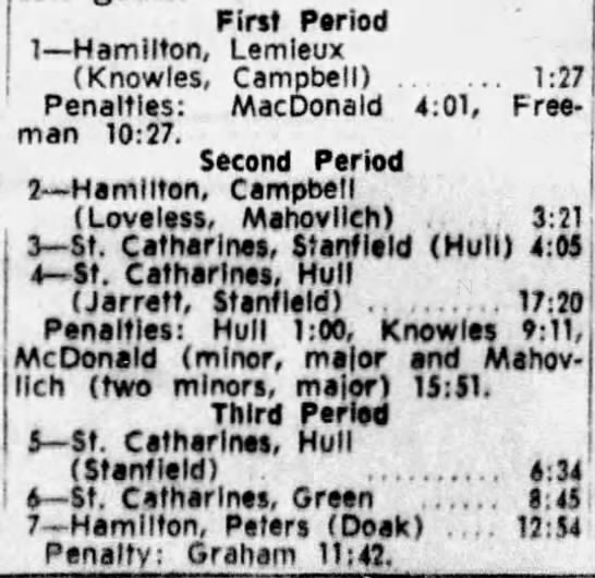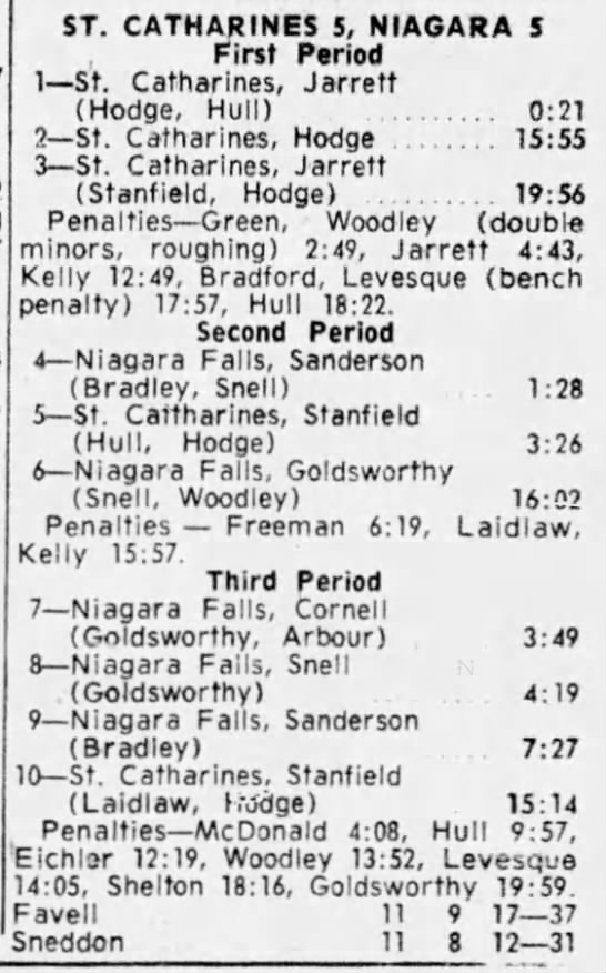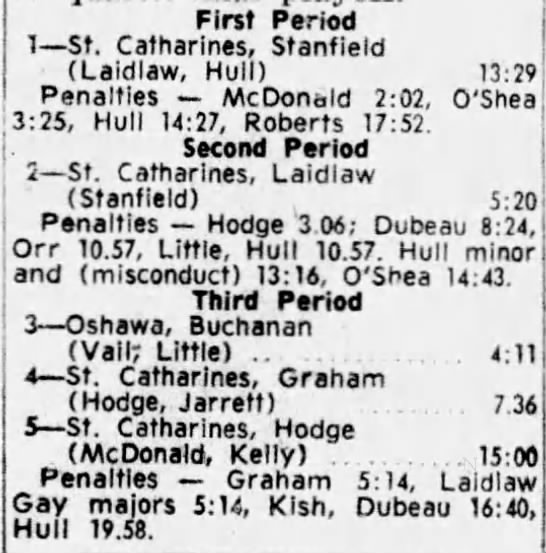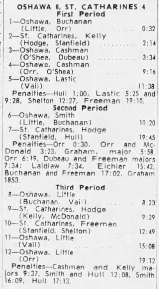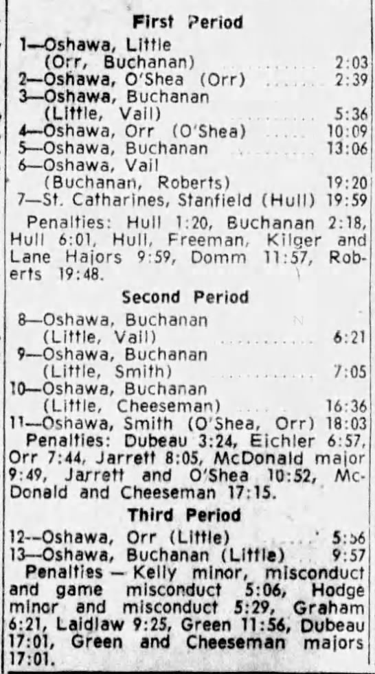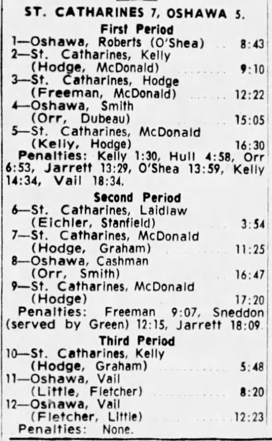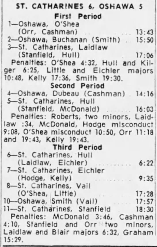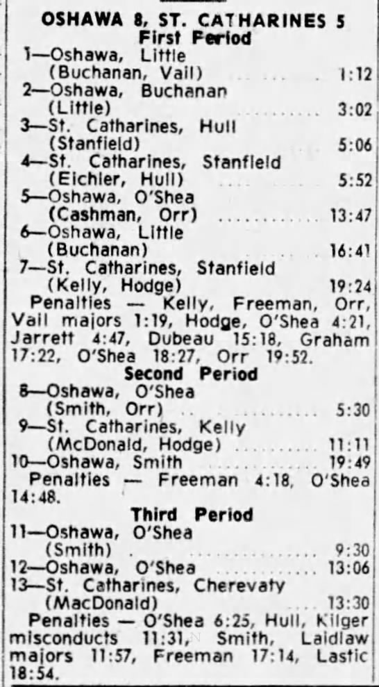 October 20 1963- Oshawa @ St. Catharines (11-3 Oshawa)