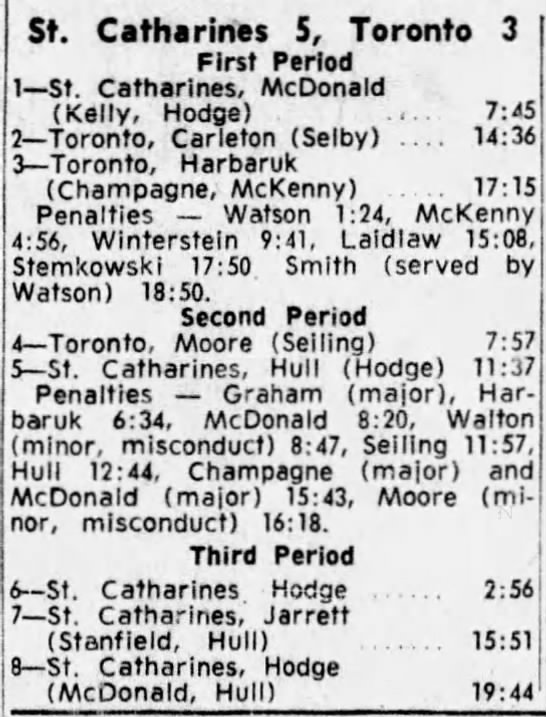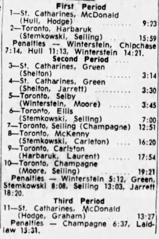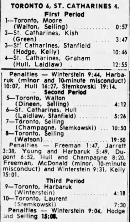 October 13 1963- Toronto @ St. Catharines (7-4 St. Catharines)