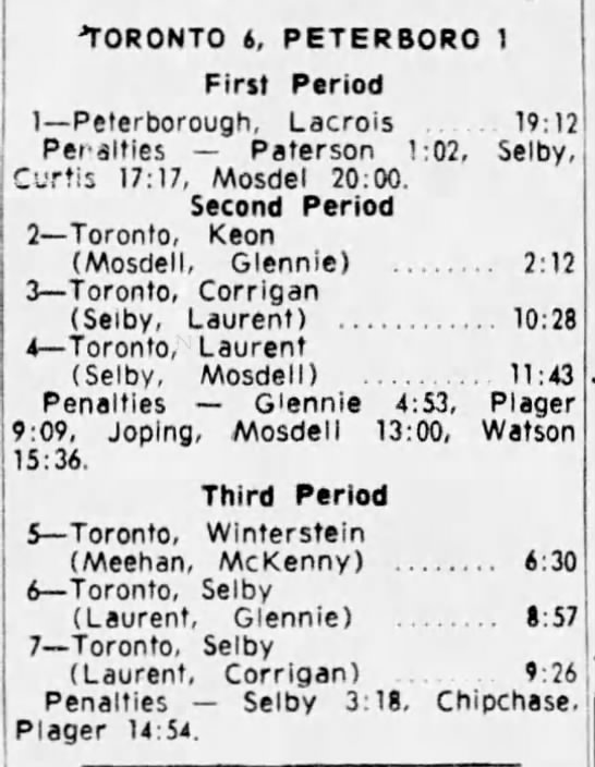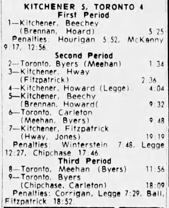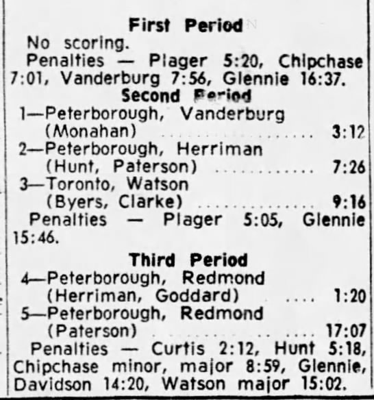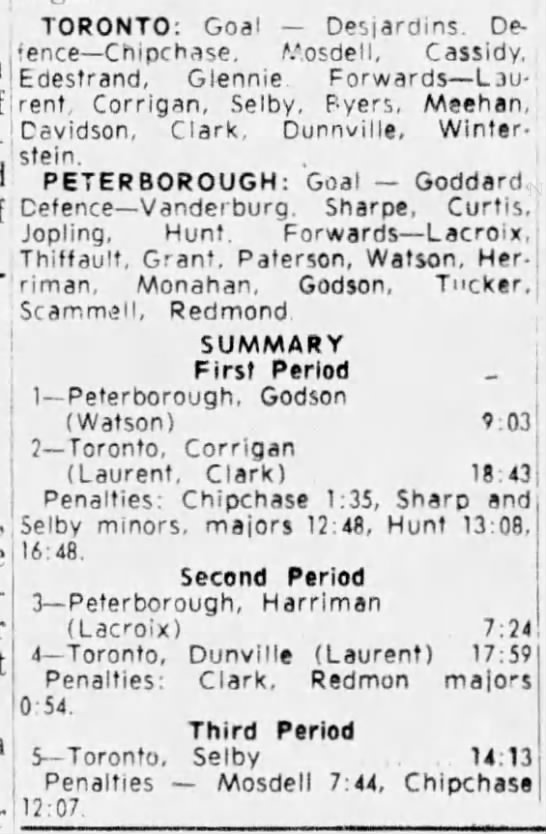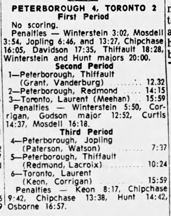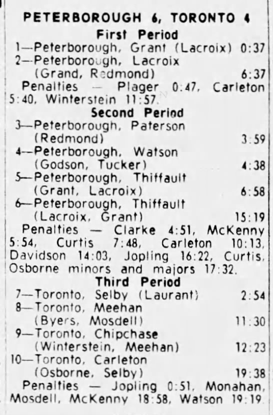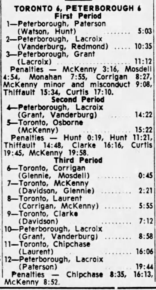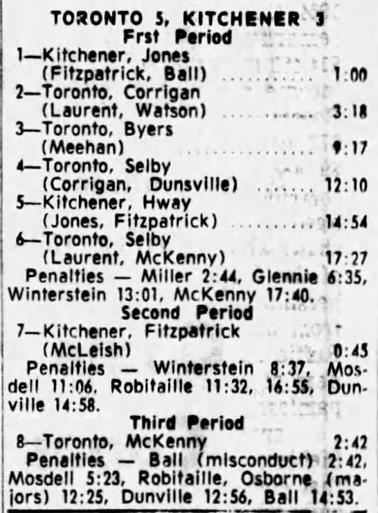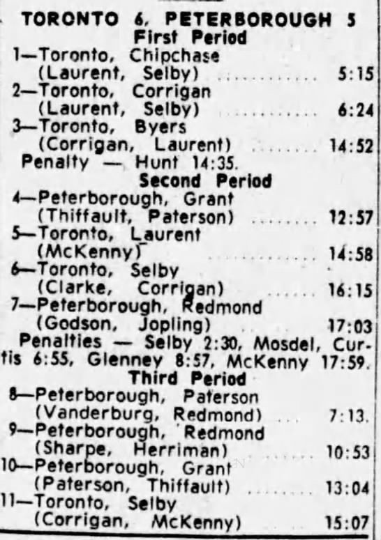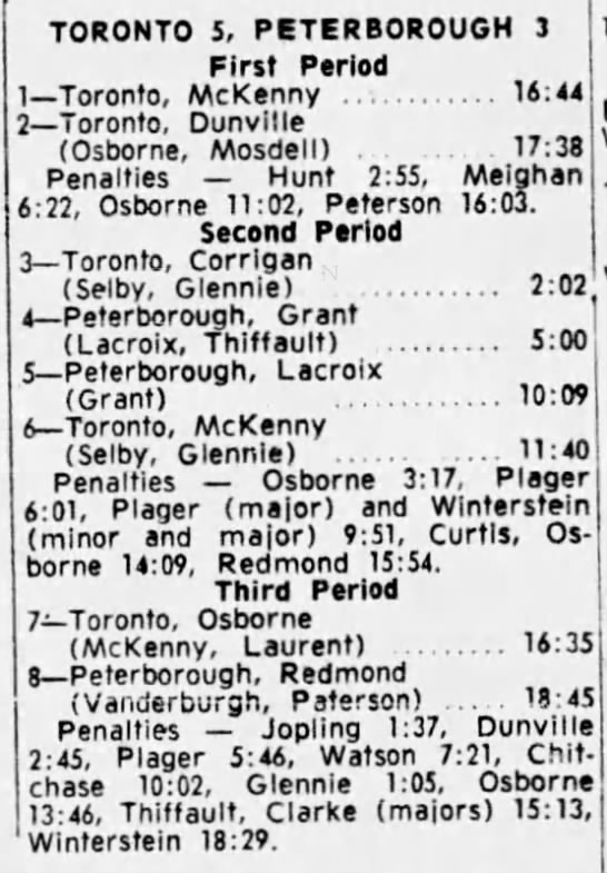 Game 6- April 3 1965- Toronto @ Peterborough (5-3 Toronto)
