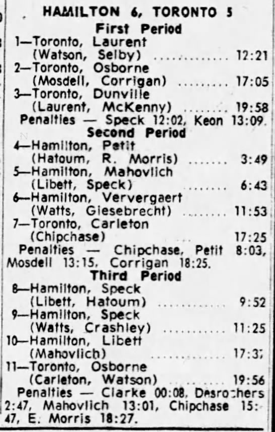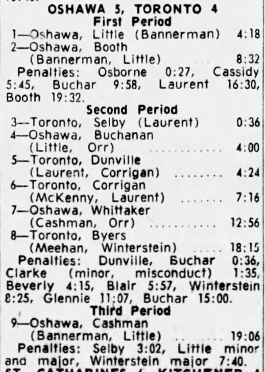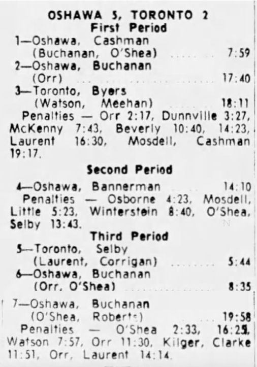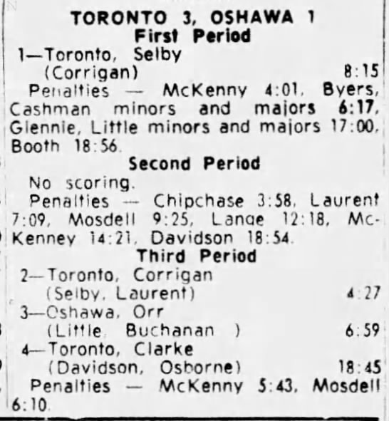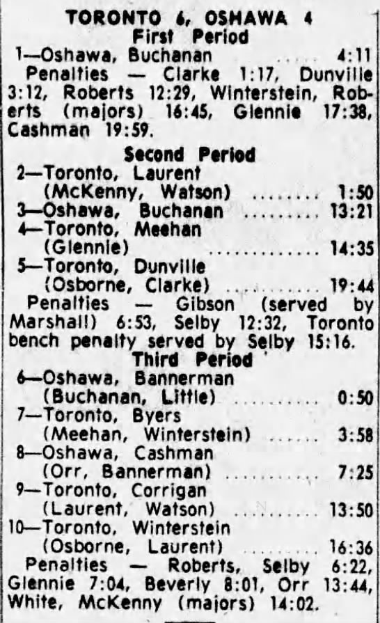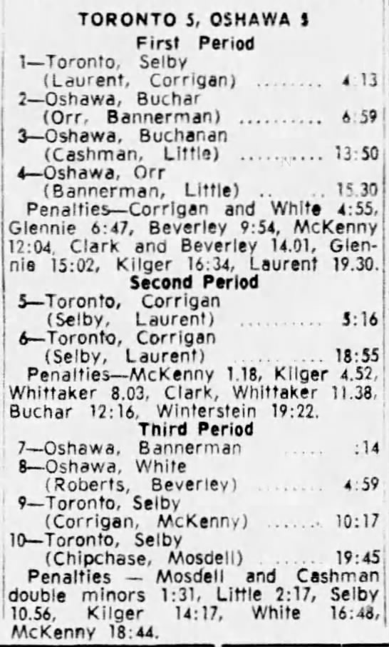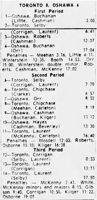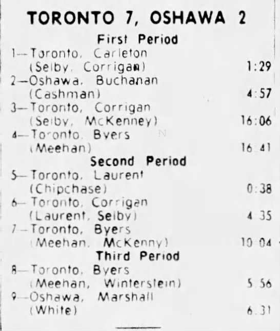 October 25 1964- Oshawa @ Toronto (9-6 Oshawa)