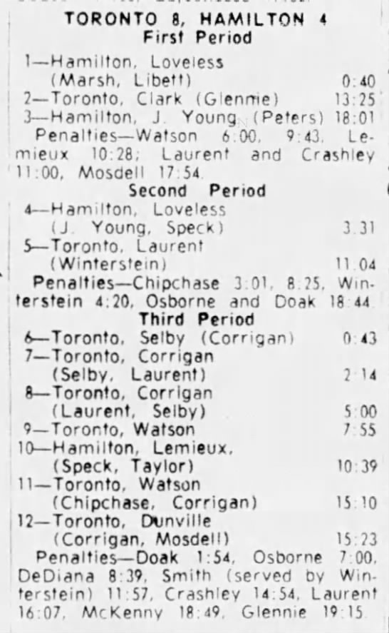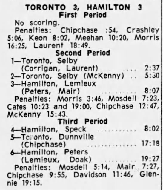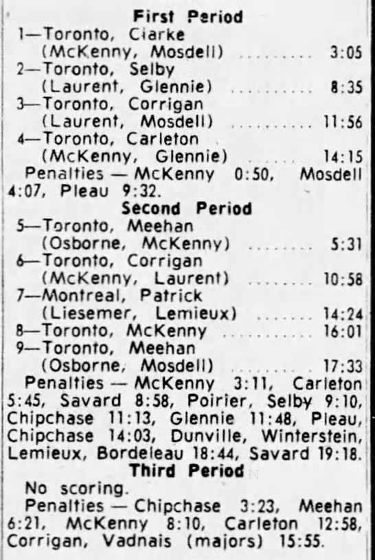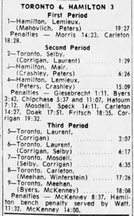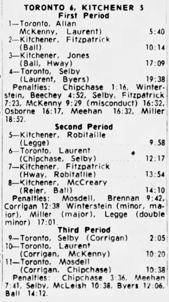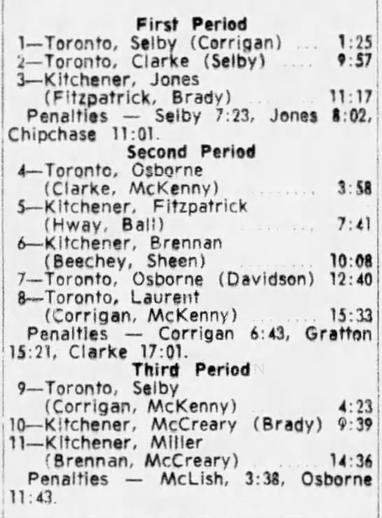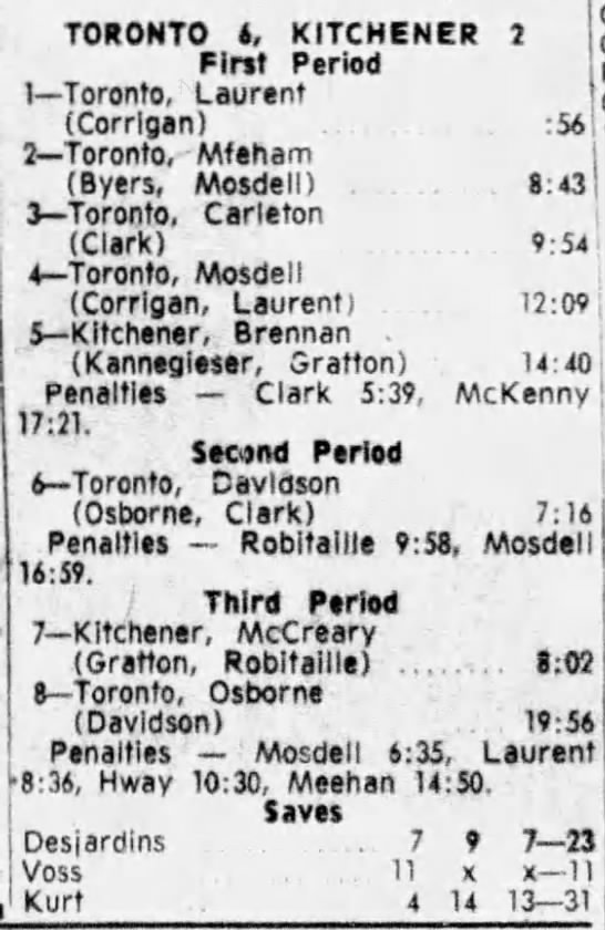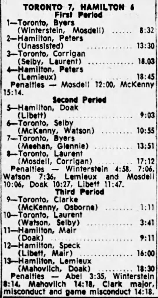 October 25 1964- Oshawa @ Toronto (9-6 Oshawa)
