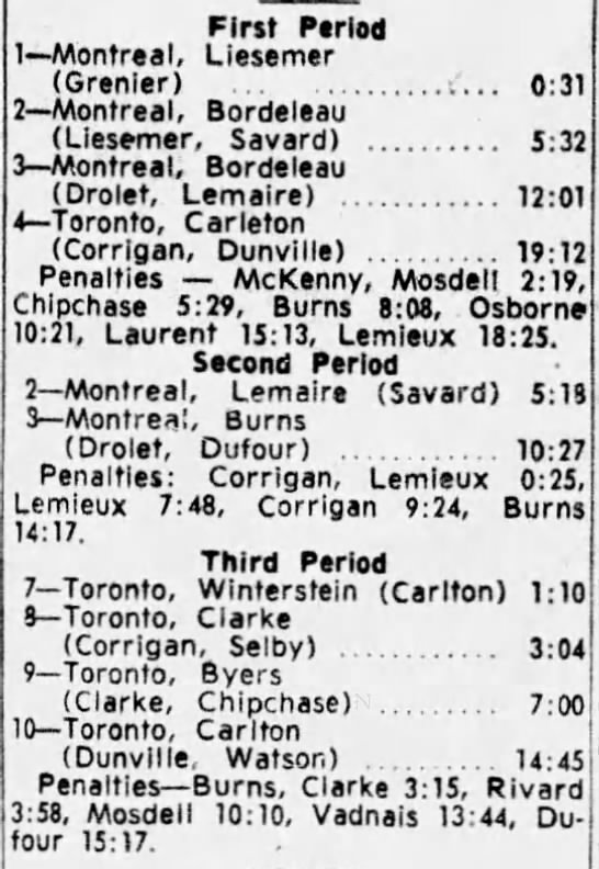 December 6 1964- Toronto @ Montreal