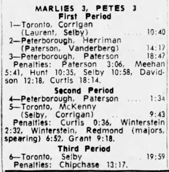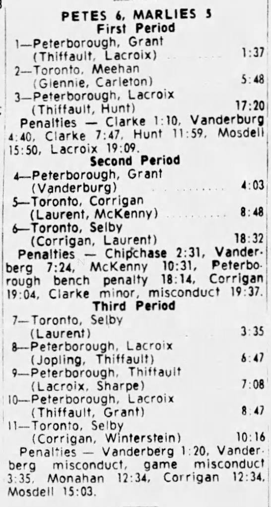 Here are the boxscores from the 1964-65 Toronto Marlboros season. Most boxscores from that season are here (67/76 boxscores). If you have any of the games that are missing, please send them my way.