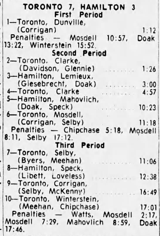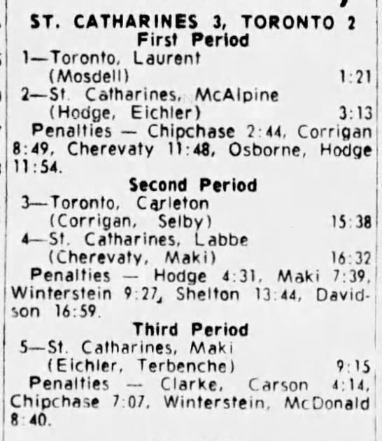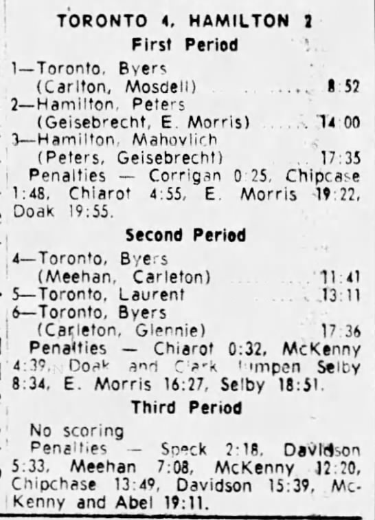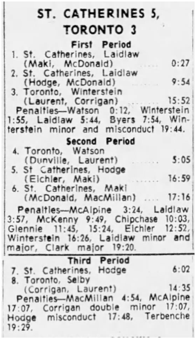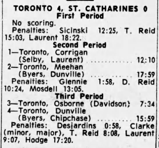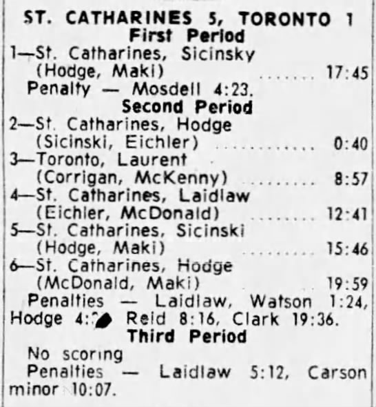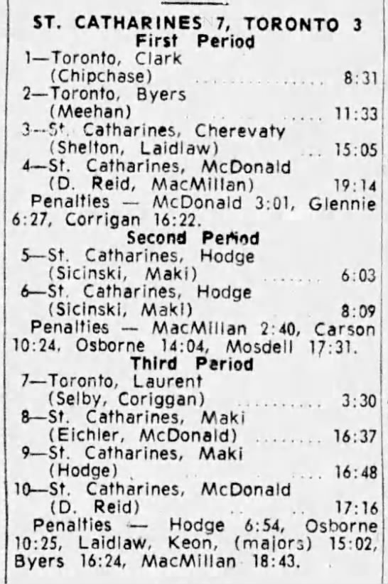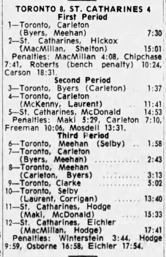 December 27 1964- St. Catharines @ Toronto (10-7 Toronto)