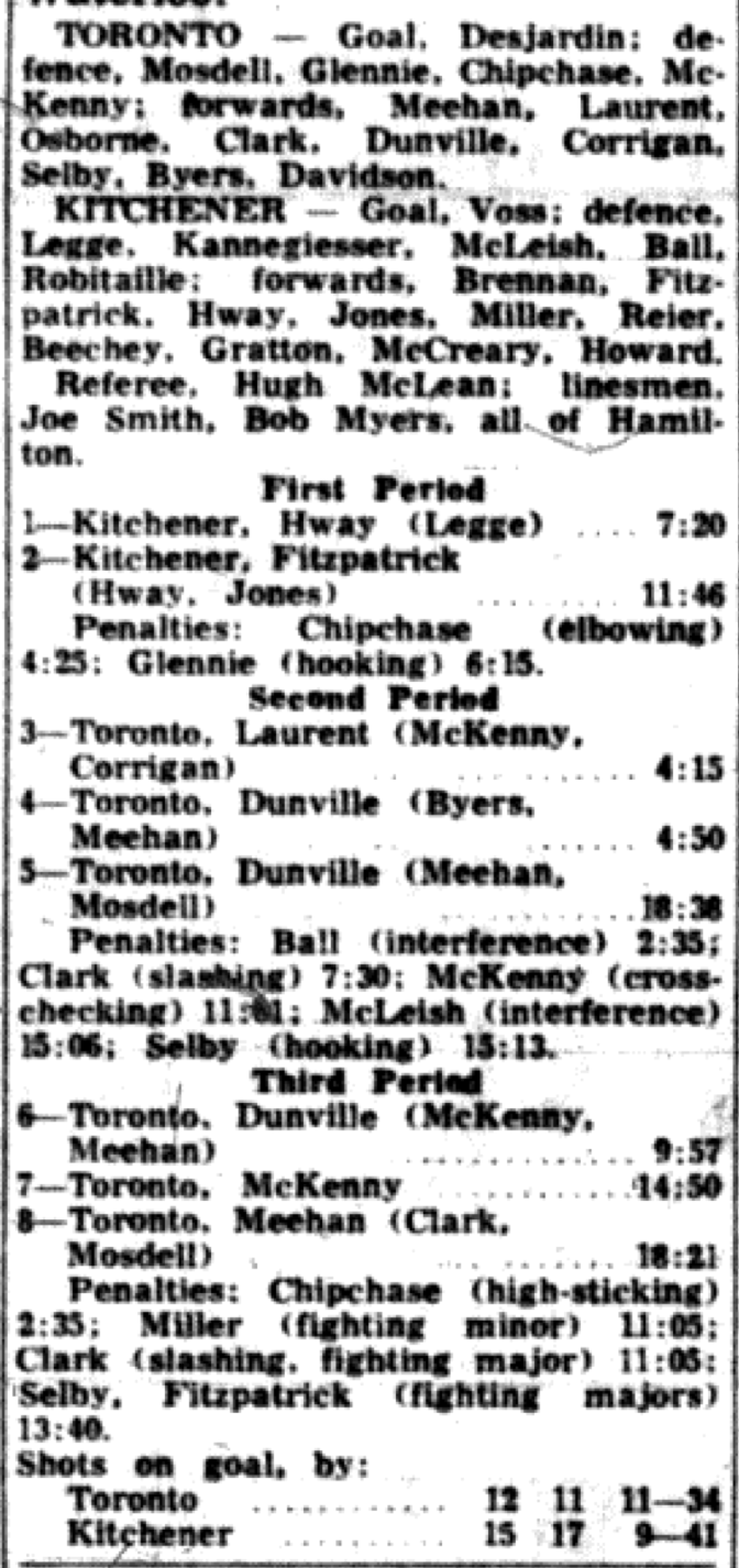 November 1 1964- Kitchener @ Toronto